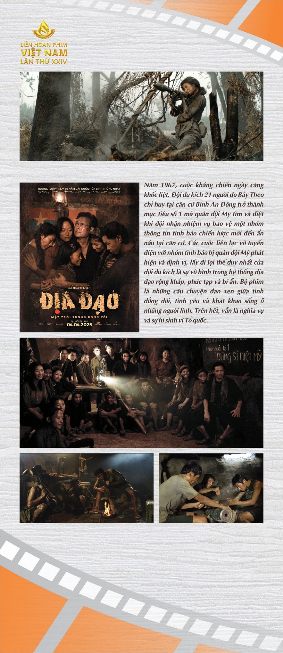 Đêm khai mạc LHP cũng hứa hẹn mang đến bữa tiệc nghệ thuật đặc sắc với sự tham gia của nhiều nghệ sĩ tên tuổi: NSƯT Cao Minh, ca sĩ Trần Thu Hà, Hoàng Bách, Đức Phúc, Trọng Hiếu, Hoàng Dũng, Anh Tú, Orange, Nguyễn Hùng, Han Sara, Lamoon... Đặc biệt, dàn diễn viên các bộ phim Mưa đỏ, Tử chiến trên không, Địa đạo: Mặt trời trong bóng tối cũng xuất hiện trên sân khấu.
