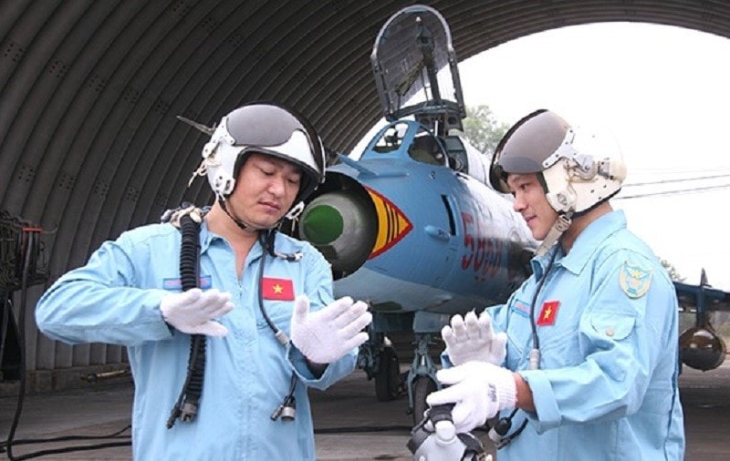 Phi công Trung đoàn 921, Sư đoàn 371 trao đổi kinh nghiệm trước ban bay. (Ảnh: THÀNH CHUNG)