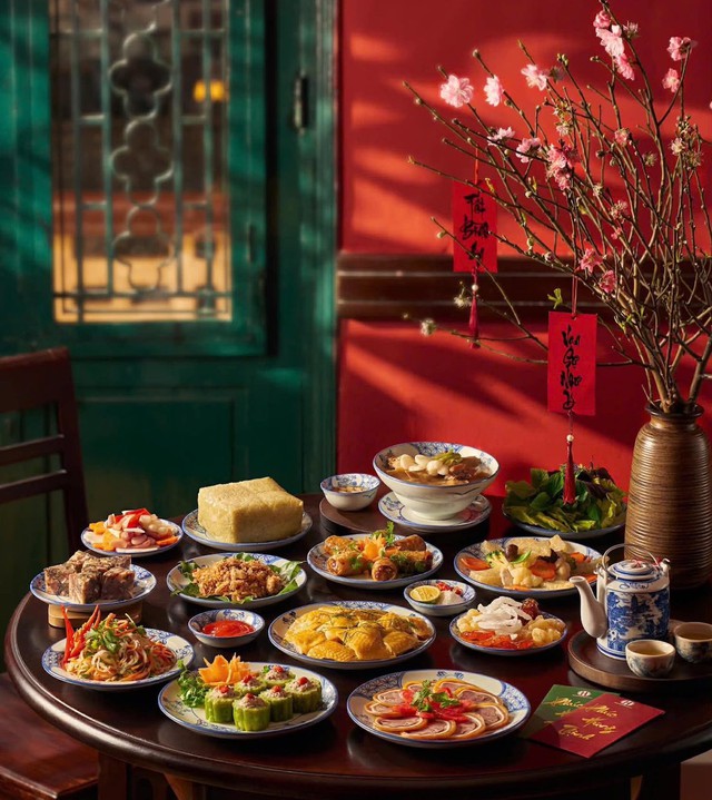 Mâm cơm ngày Tết. Ảnh: Vĩnh Quyên.