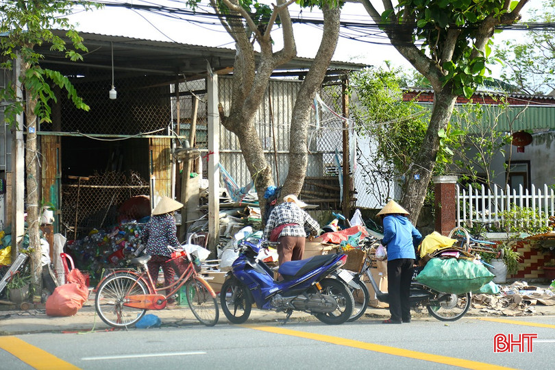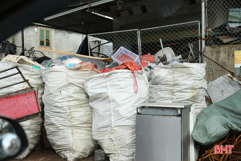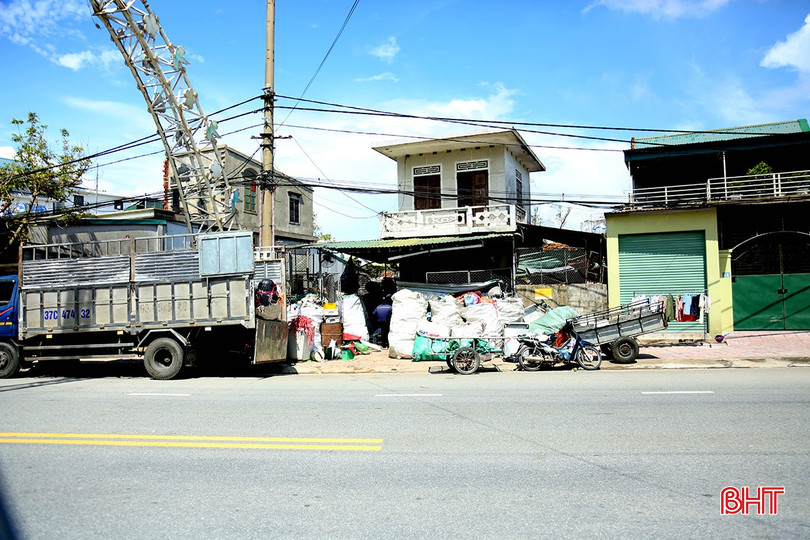 Ghi nhận tại một sơ sở thu mua lớn nằm trên tuyến đường Nguyễn Du thuộc địa phận thôn Tiên Thuận, xã Tiên Điền, các loại phế liệu nằm ngổn ngang. Do diện tích bãi chứa nhỏ nên chủ cơ sở tập kết phế liệu bên đường nhìn nhếch nhác, phản cảm.