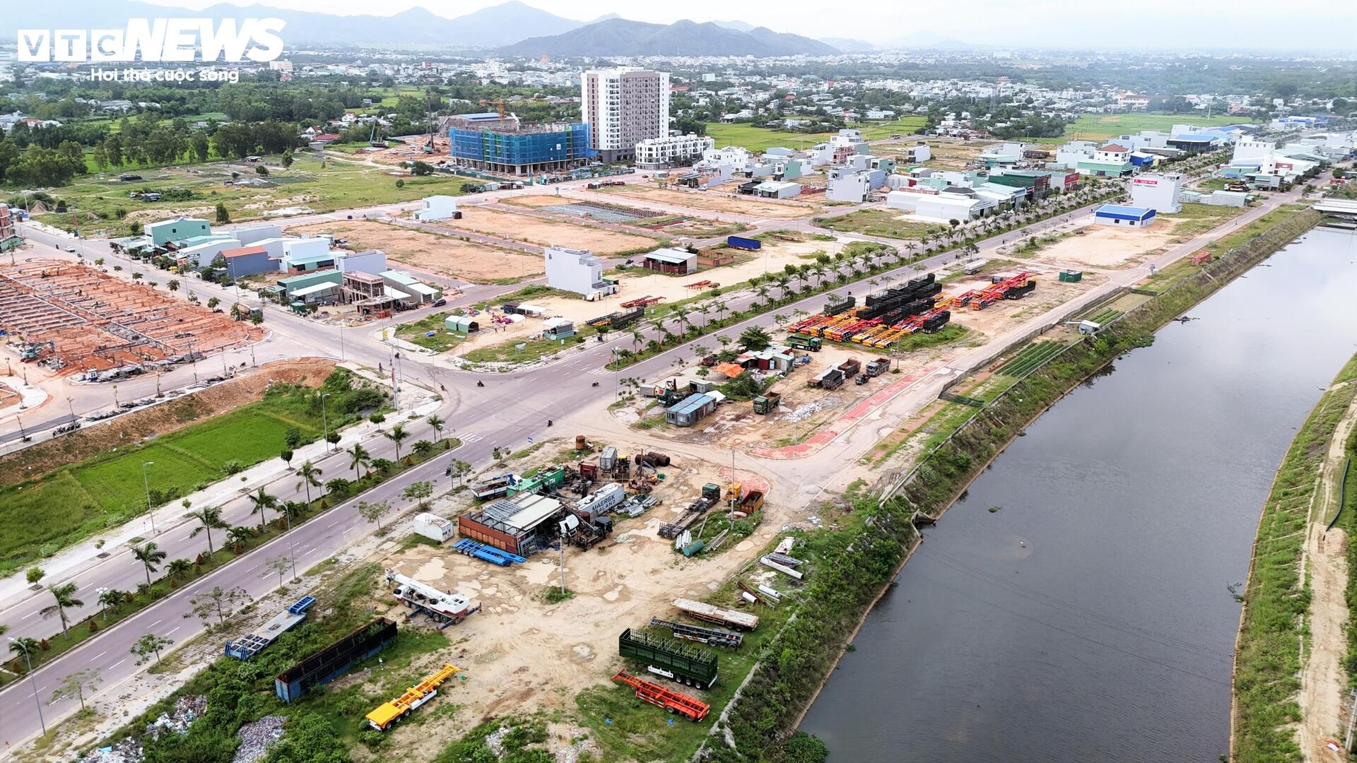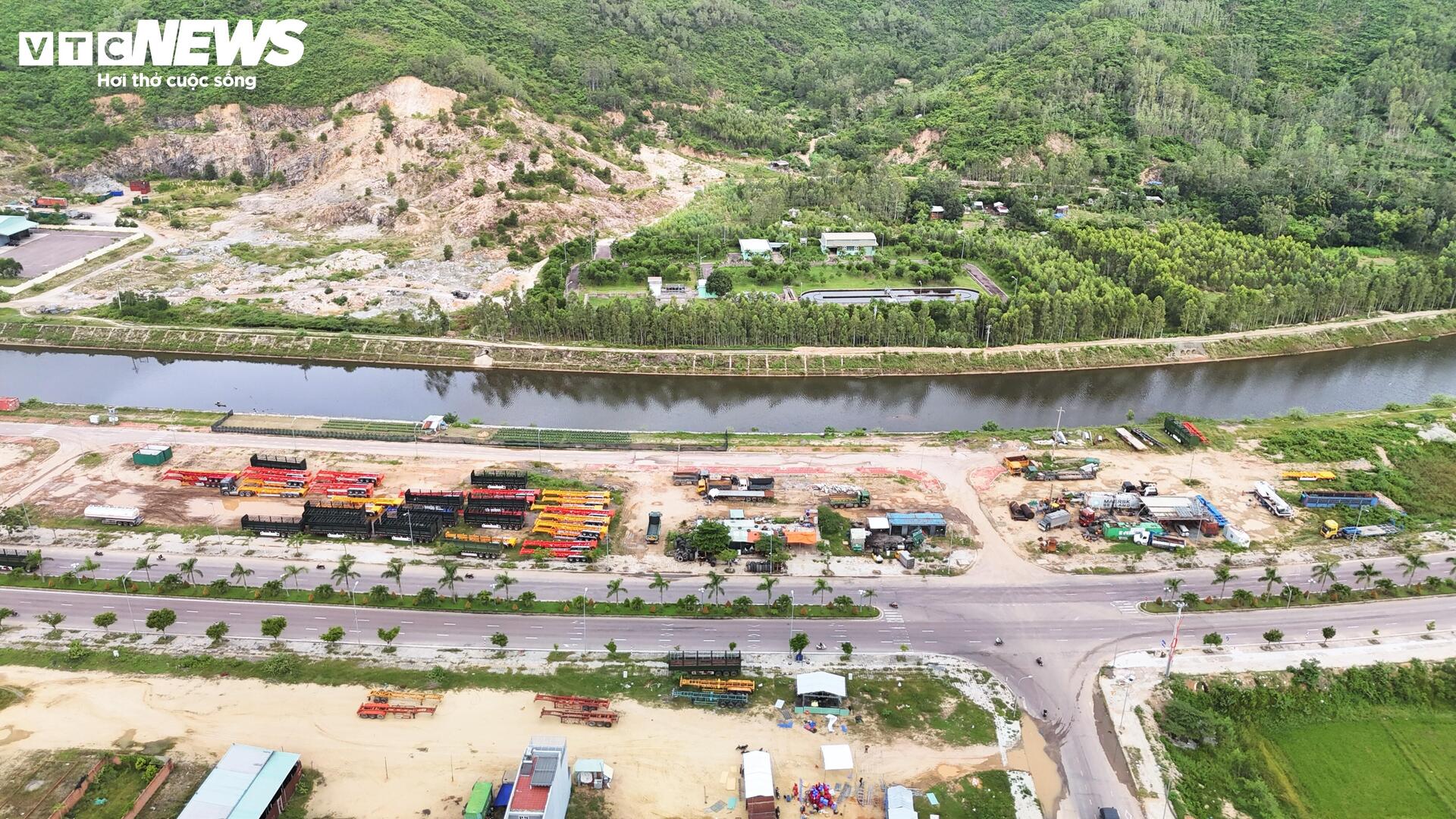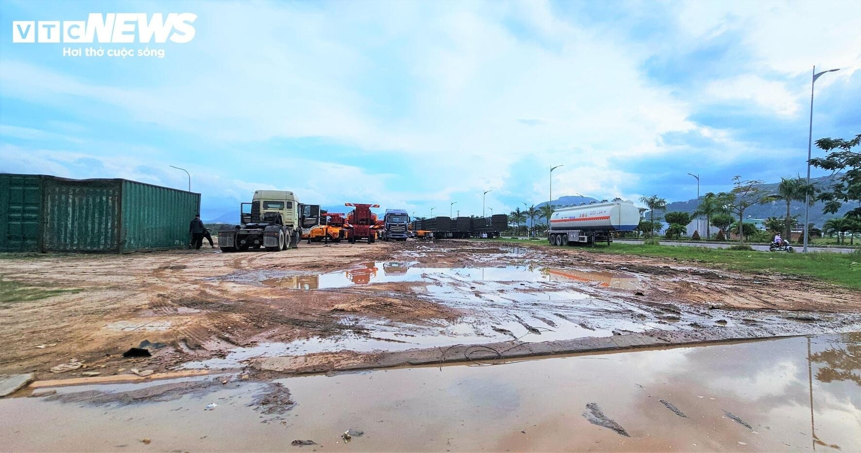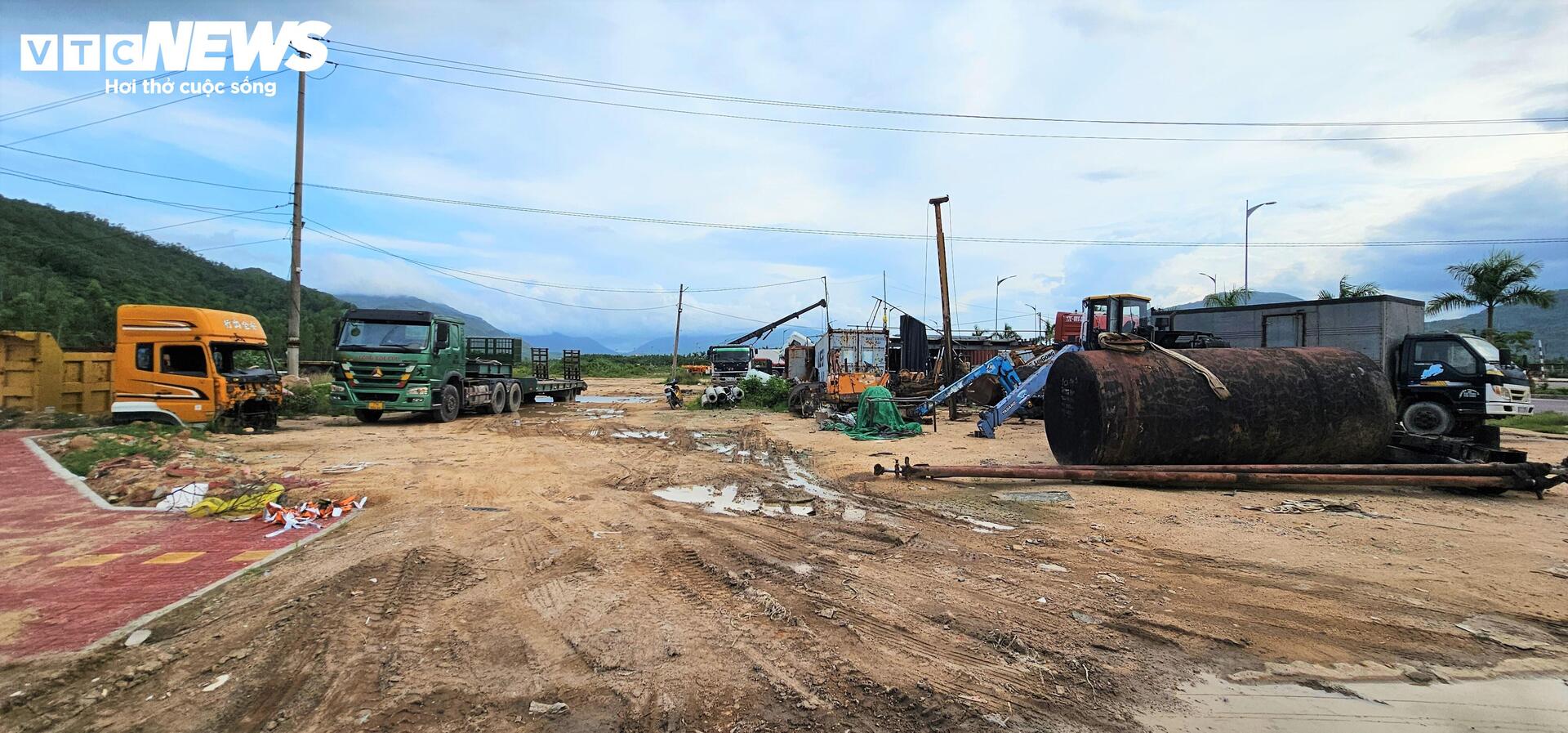 Tuy nhiên trong thời gian qua, một bãi tập kết xe, thiết bị án ngữ trên diện tích đất lớn thuộc khu đô thị, dọc bên tuyến đường nghìn tỷ đồng kết nối trung tâm Quy Nhơn đến Khu công nghiệp Becamex Vsip tại xã Canh Vinh.