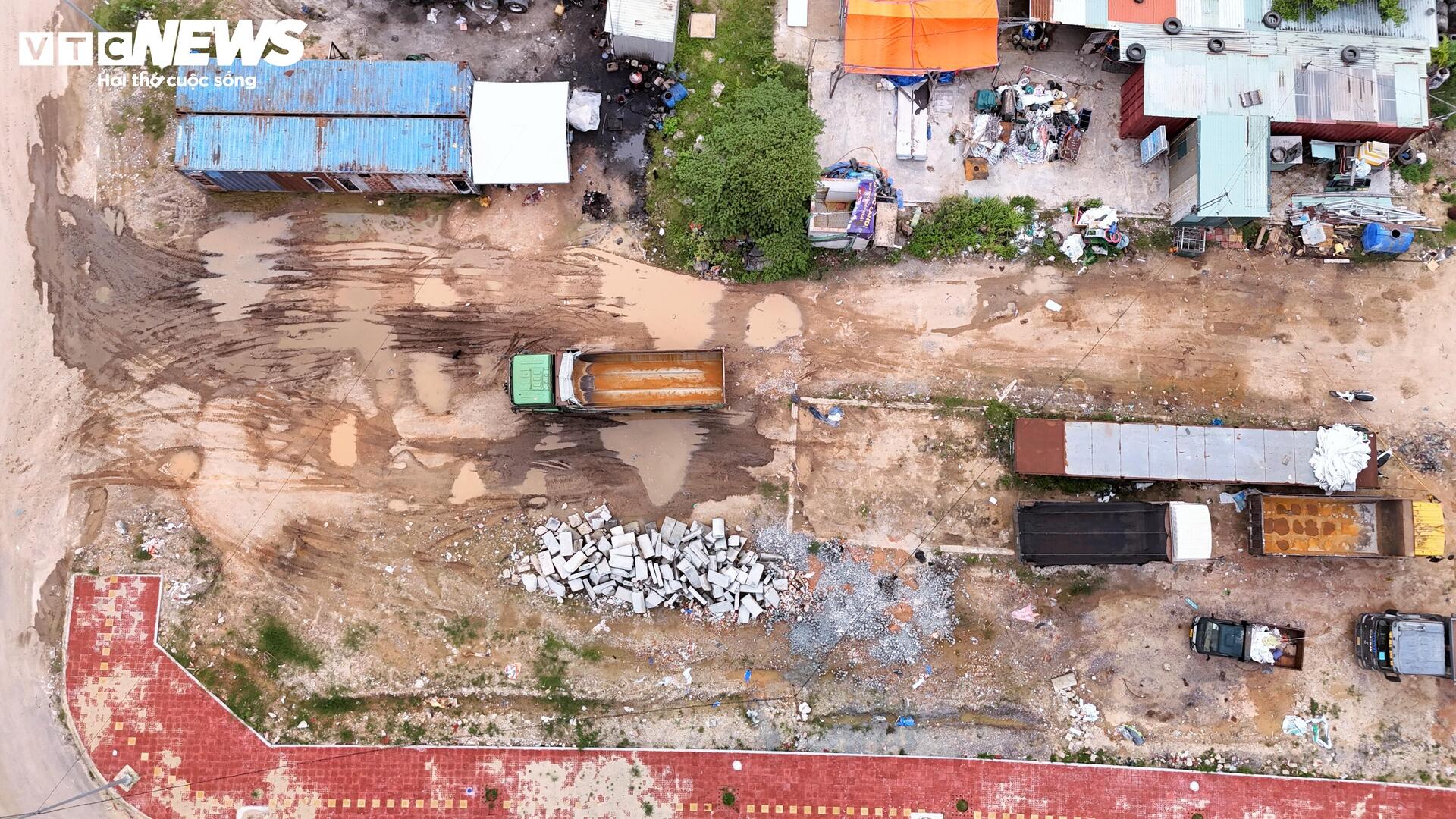 Xe thường xuyên ra vào bãi tập kết khiến mặt bằng khu đô thị bụi vào mùa nắng, lầy lội vào mùa mưa.