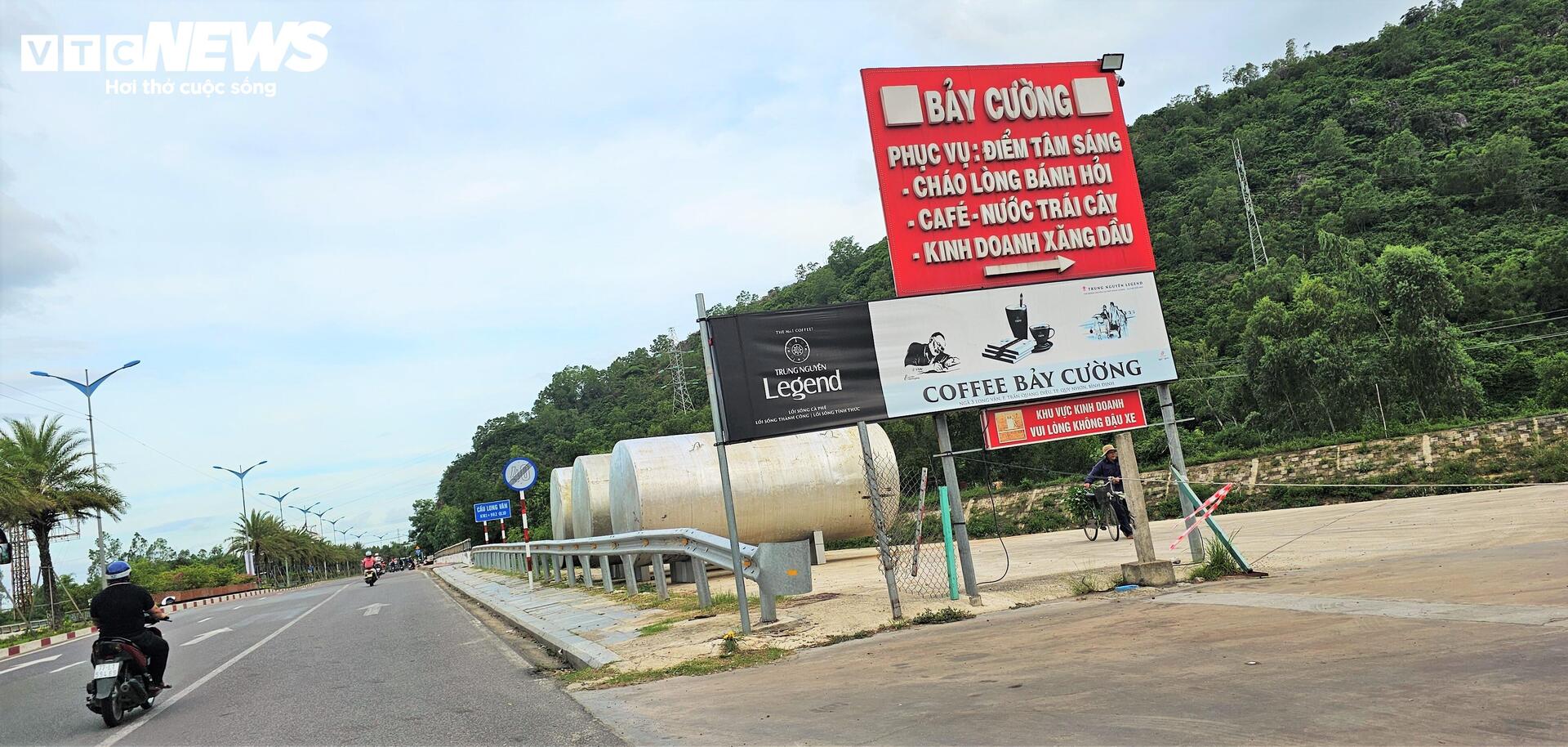 Không chỉ nhếch nhác, lộn xộn trong khu đô thị mới Long Vân, ngay lối vào khu đô thị kết nối quốc lộ 1D cũng xuất hiện các thiết bị bồn lớn che chắn, khuất tầm nhìn và có dấu hiệu lấn chiếm hành lang an toàn giao thông.