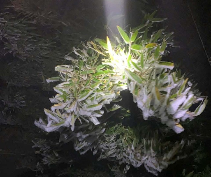 Băng giá phủ kín cây lá trên đỉnh đỉnh Fansipan. Ảnh: Sun Group