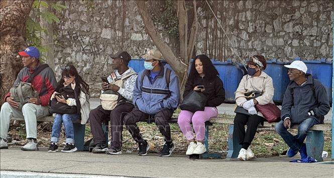 Người dân thủ đô La Habana co ro tại một bến xe buýt.