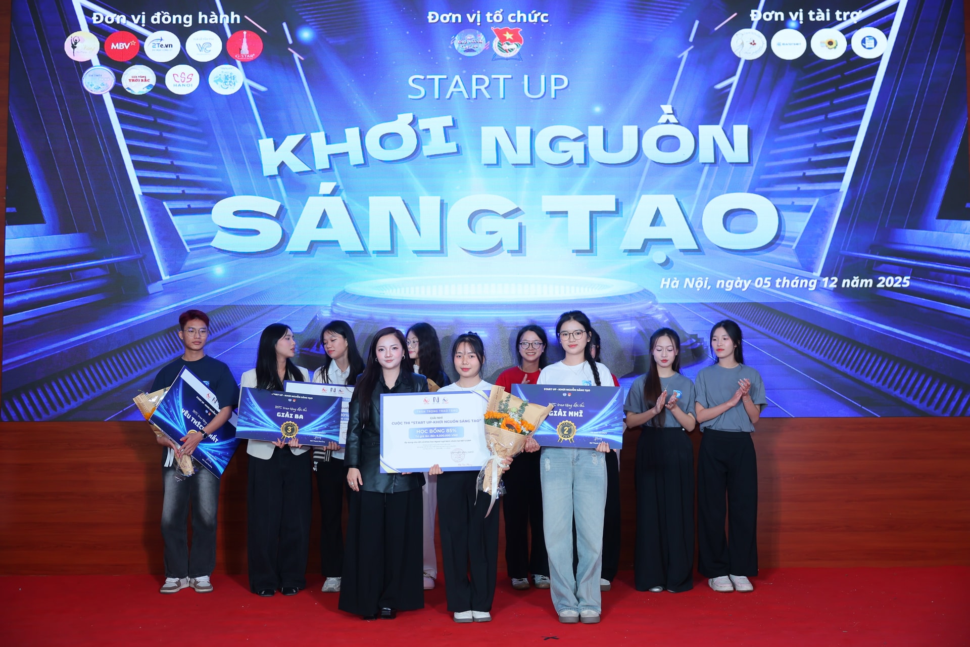 Lệ Giang (áo đen, hàng đầu) làm Ban giám khảo và tài trợ cho cuộc thi khởi nghiệp sáng tạo của các bạn sinh viên Học viện Thanh thiếu niên Việt Nam. Ảnh: NVCC