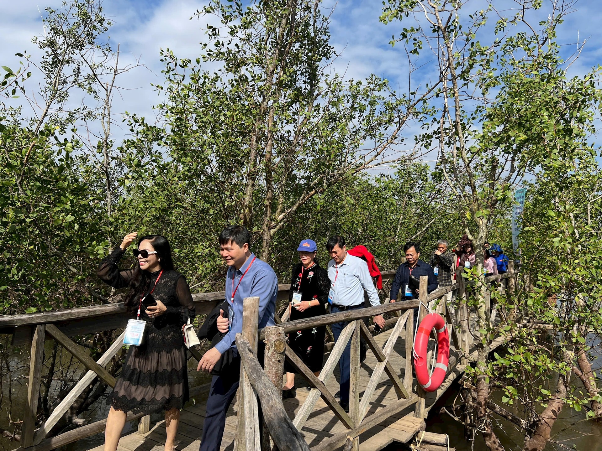 Để phát triển du lịch mà vẫn bảo tồn nguyên vẹn giá trị thiên nhiên, một cây cầu gỗ dài gần 3km được xây dựng để du khách có thể cảm nhận từng hơi thở của cây sú vẹt cùng tiếng chim ríu rít sớm chiều.