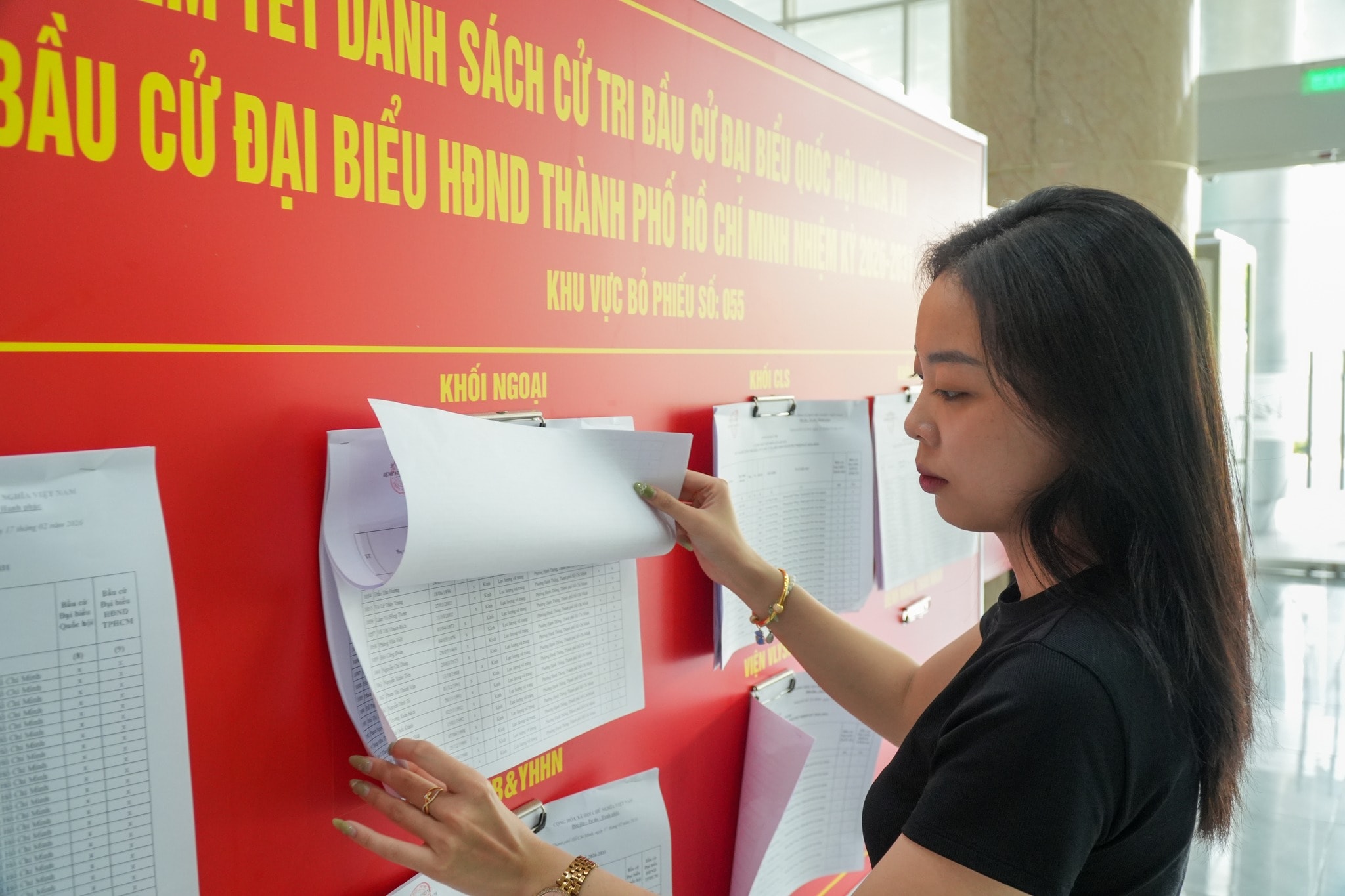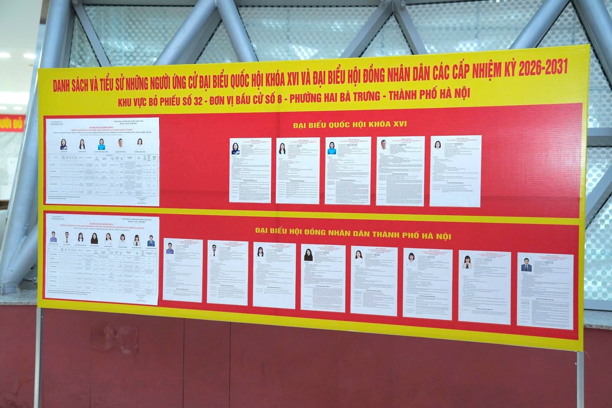 Bệnh viện niêm yết danh sách cử tri cùng danh sách những người ứng cử đại biểu Quốc hội khóa XVI và đại biểu HĐND TP.HCM nhiệm kỳ 2026-2031. Ảnh: BVCC