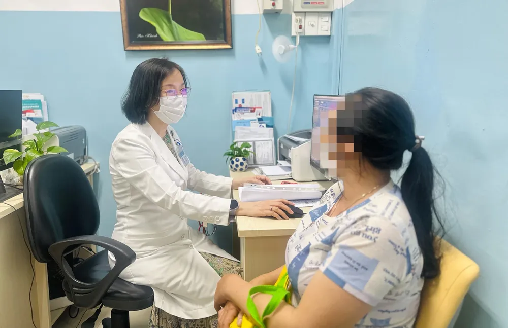 TS.BS Lê Thị Thu Hương, Trưởng khoa Nội hô hấp, Bệnh viện Nhân dân Gia Định, thăm khám cho bệnh nhân. Ảnh: THẢO PHƯƠNG