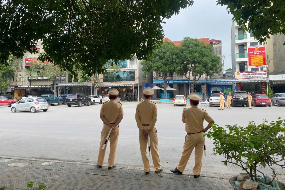 Nhiều cảnh sát giao thông trên tuyến phố này để điều tiết giao thông, bảo vệ an ninh trật tự.