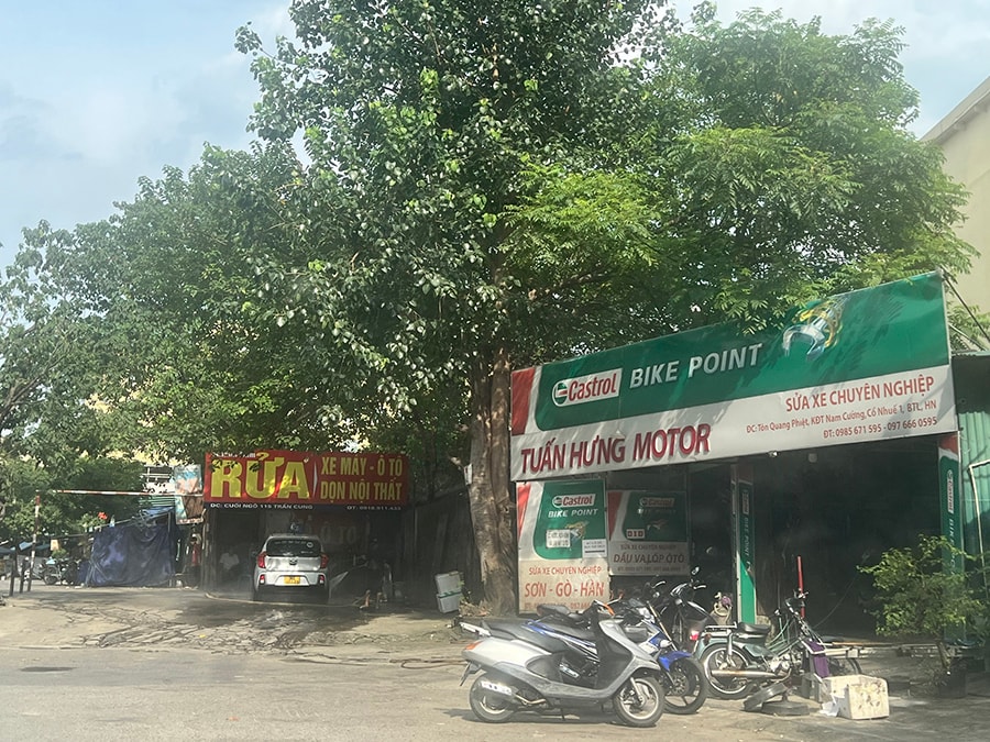 Tương tự, phố Tôn Quang Phiệt (phường Nghĩa Đô) luôn tấp nập các hoạt động sửa xe, chăm sóc xe hơi. Tình trạng dựng ki ốt, mở cửa hàng sửa xe, rửa xe… trên vỉa hè, lòng đường và đất lưu không khá phổ biến. Hằng ngày, các cửa hàng sử dụng diện tích đất công cộng để phun nước rửa xe, bày bàn ghế, làm "méo mó" bộ mặt đô thị.