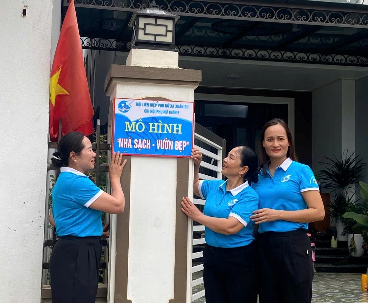 Phụ nữ xã Xuân Du gắn biển công trình “nhà sạch, vườn đẹp” cho hội viên đạ tiêu chí
