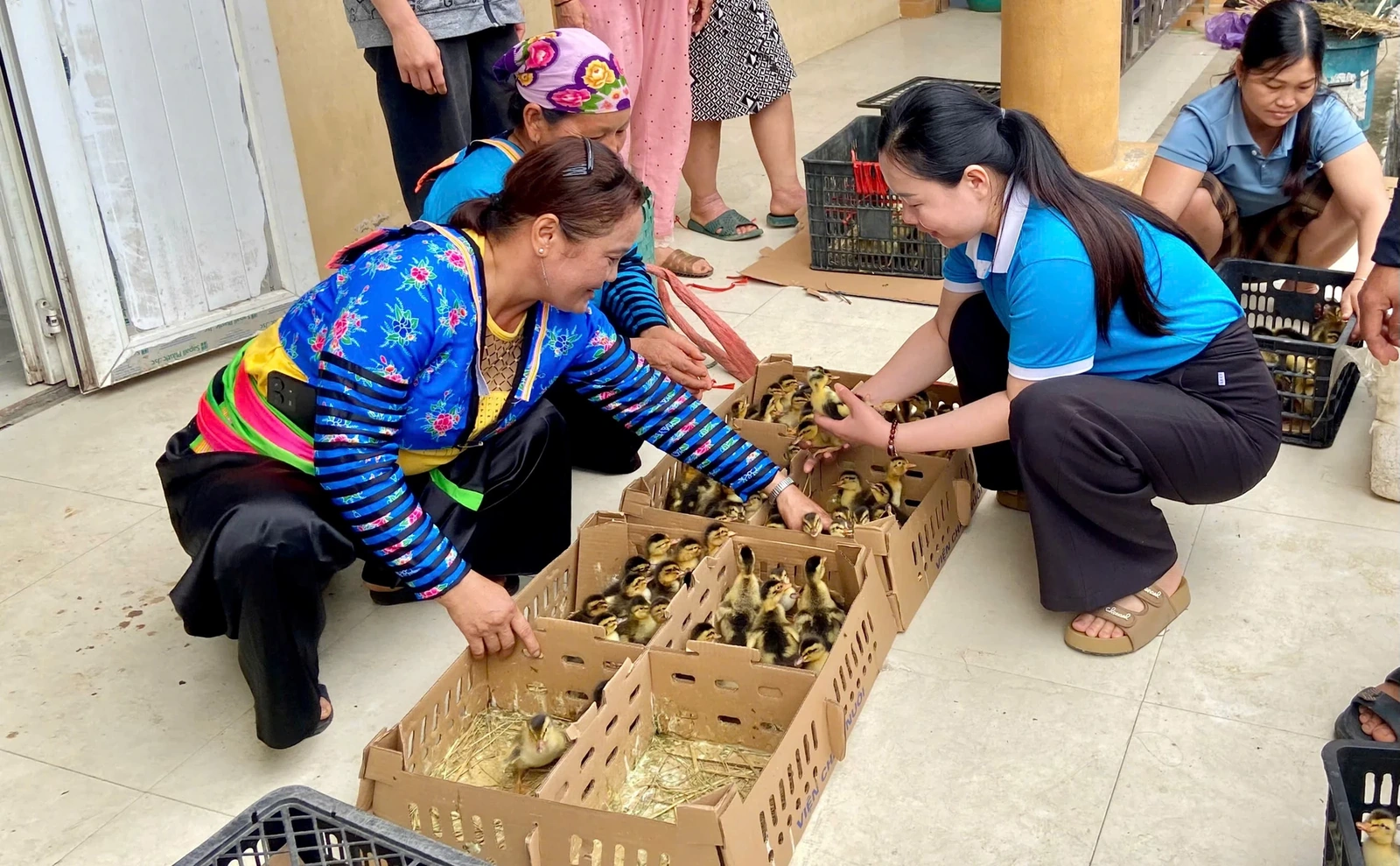 Hội LHPN xã Pù Nhi trao con giống cho hội viên khó khăn