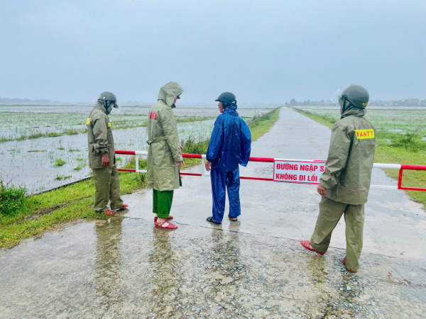 Nhằm đảm bảo an toàn tính mạng cho người dân, hiện, lực lượng Công an xã Quảng Điền đang kiểm soát giao thông tại các khu vực đường bị ngập, tràn để hướng dẫn người, phương tiện và phân luồng giao thông đảm bảo an toàn. Đồng thời, Công an xã vừa lập thêm các rào chắn, biển báo cảnh báo ở các đoạn đường bị ngập sâu.