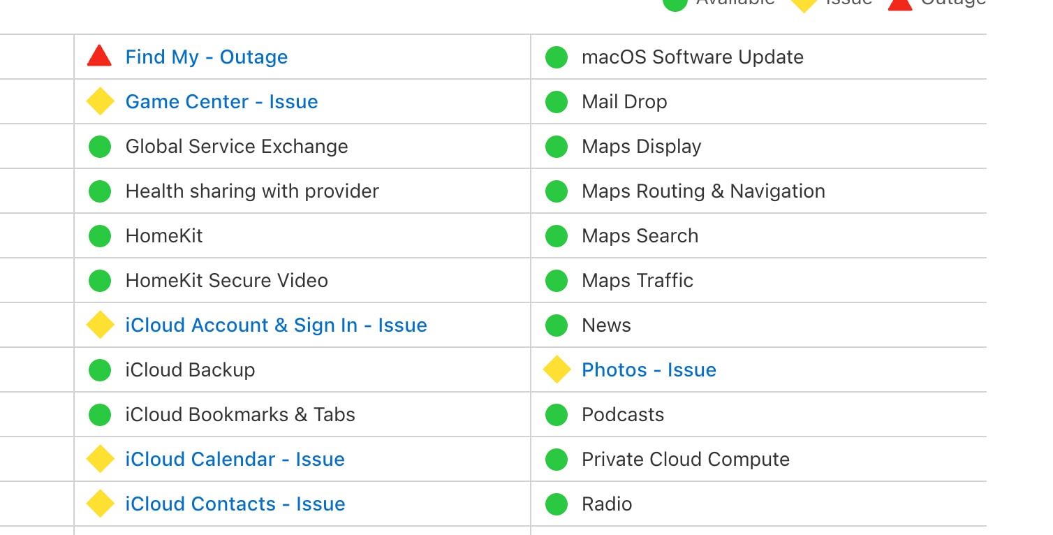 Các dịch vụ này không chỉ đơn thuần “chập chờn”, mà có thể dừng hoạt động hoàn toàn với một số người dùng và ảnh hưởng tới các tính năng trên thiết bị MacBook, iPhone, iPad.