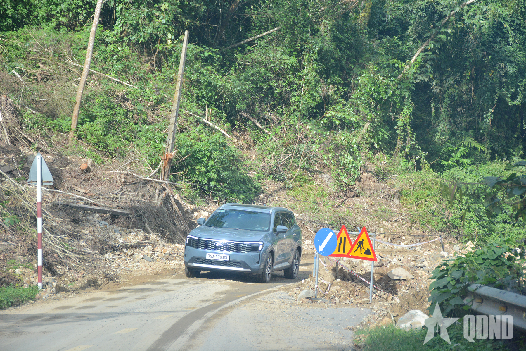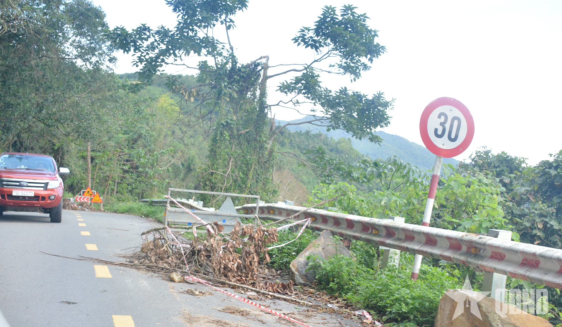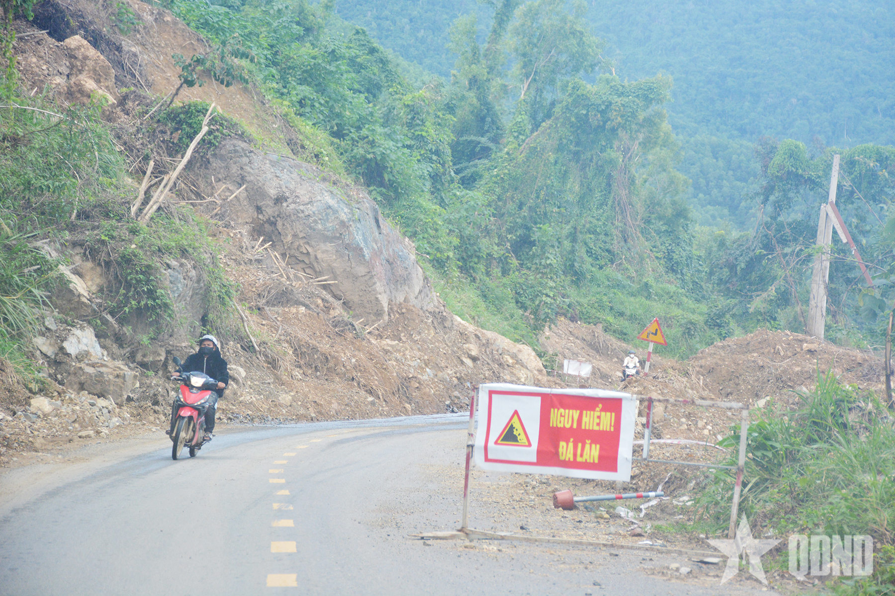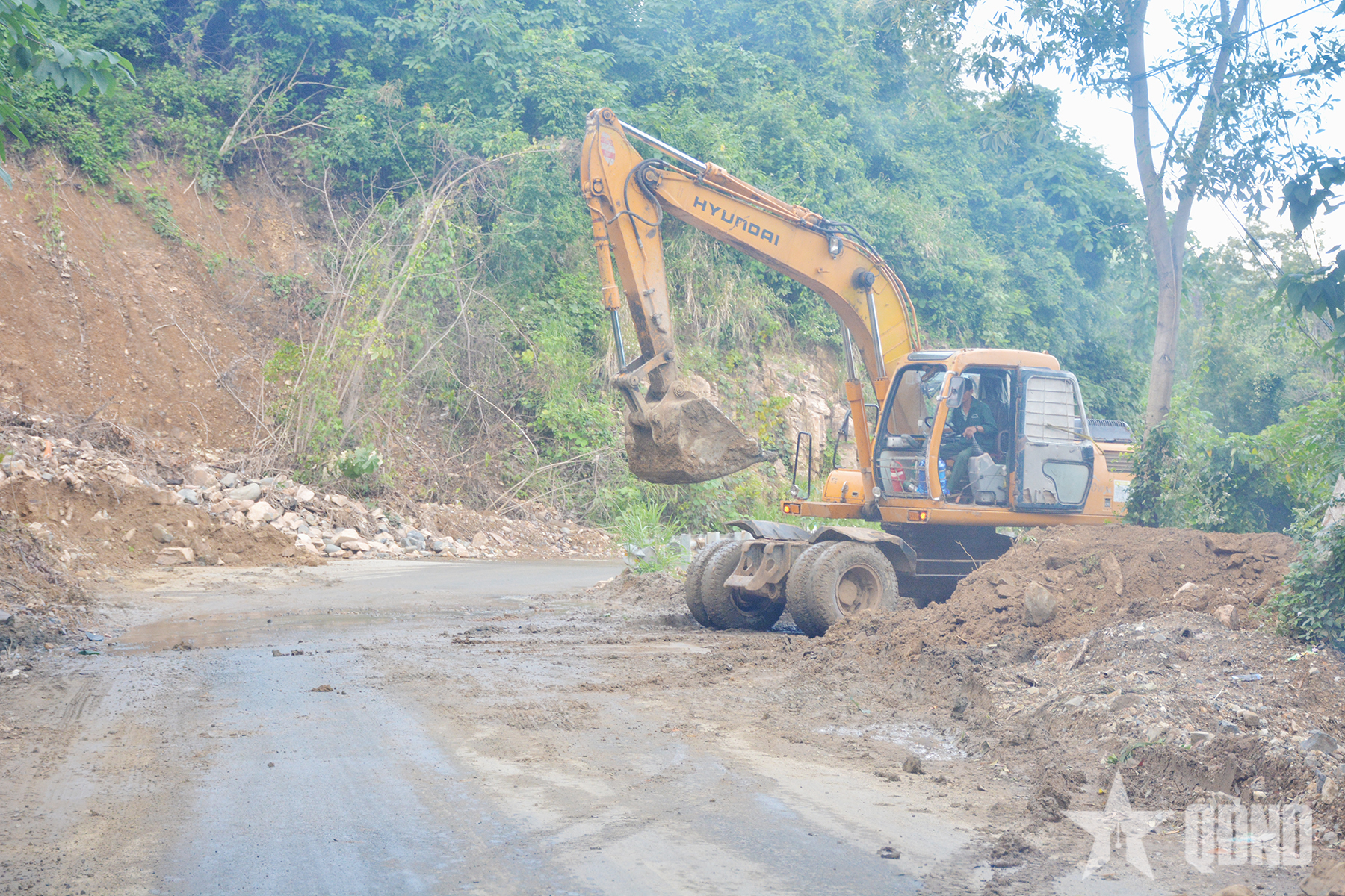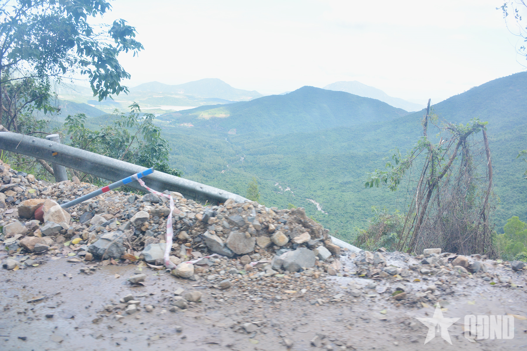 Tại hiện trường, nhiều đoạn nền đường nhựa bị khoét sâu, tạo thành những hố sâu nguy hiểm ngay sát mép vực. Đất đá từ trên núi cao đổ xuống choán hết một phần mặt đường, gây cản trở giao thông. Các đơn vị thi công phải huy động máy xúc, phương tiện chuyên dụng để múc đất đá, san gạt mặt bằng và gia cố lại những điểm sạt lún.
