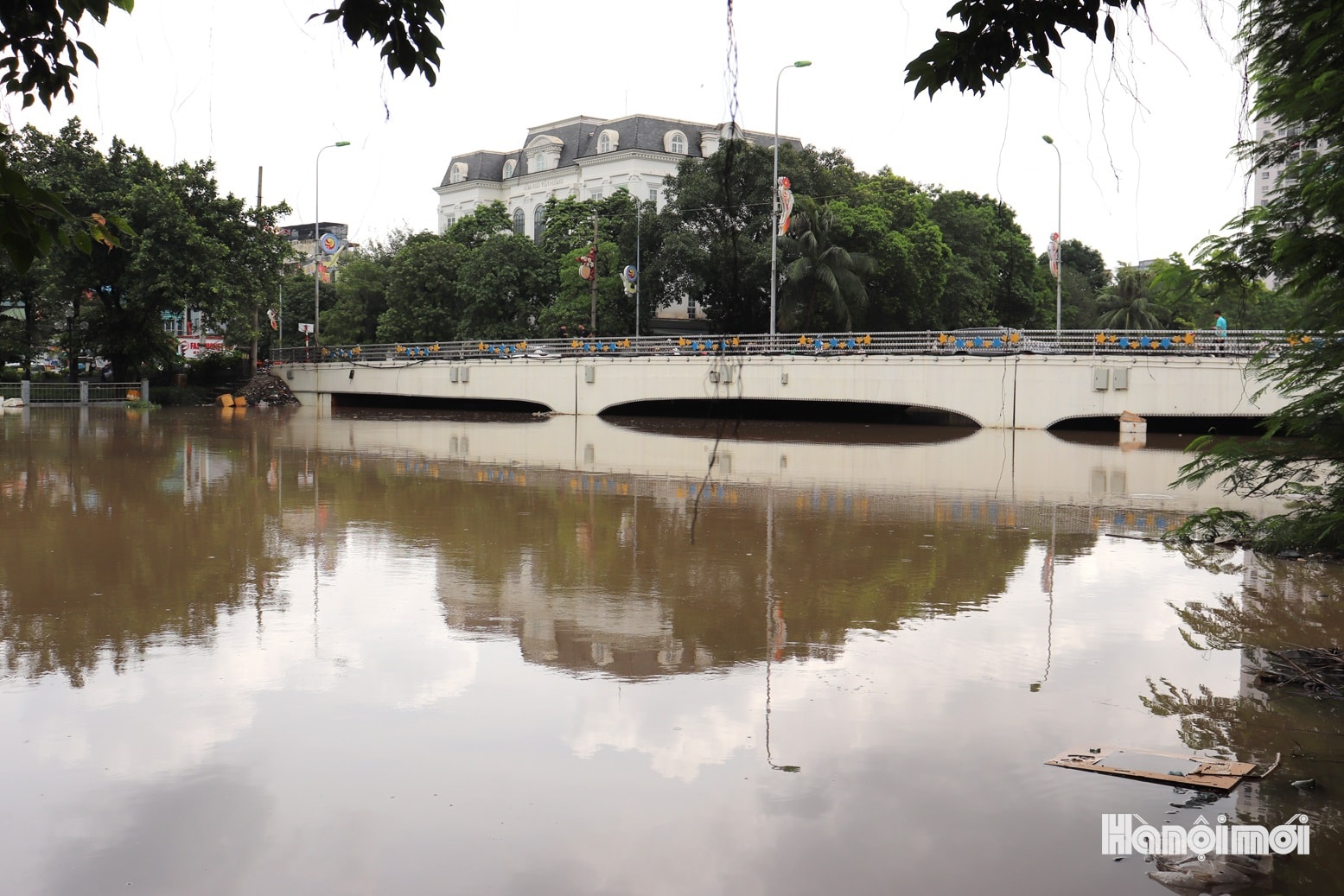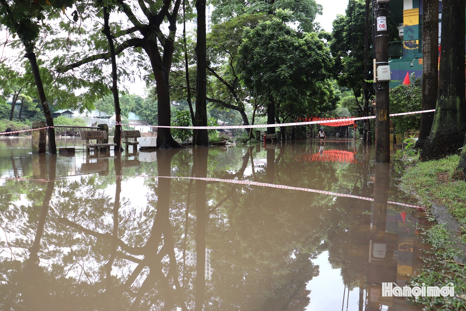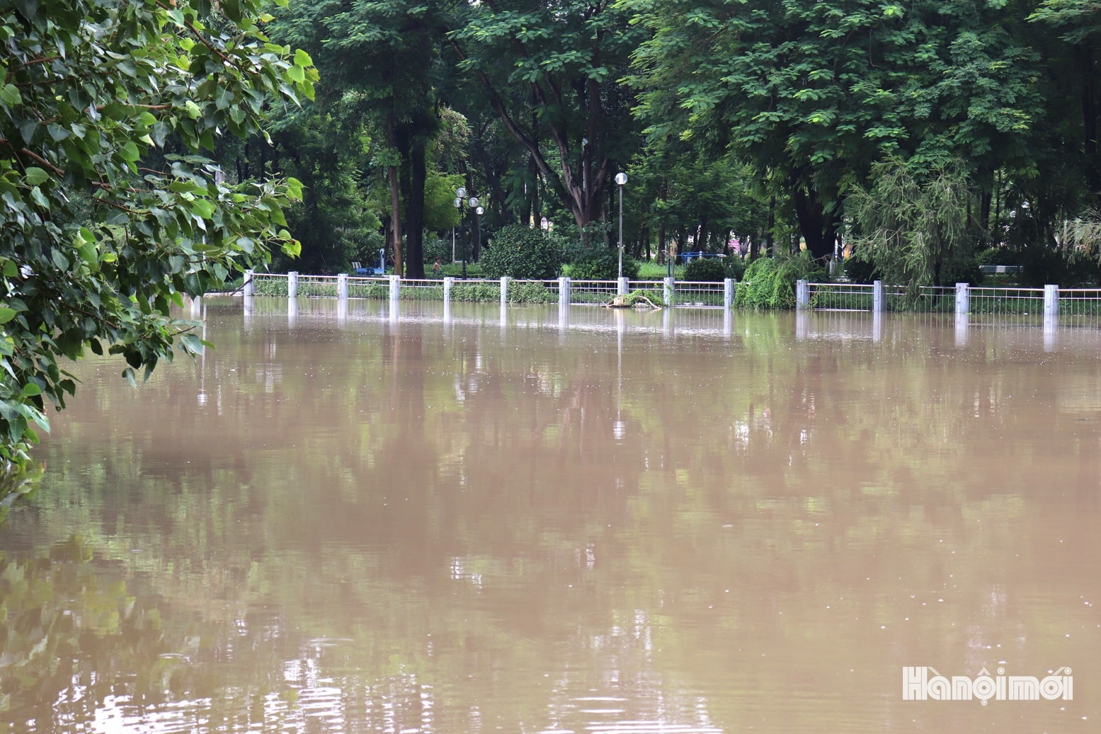 Nước sông Nhuệ dâng cao tràn vào vườn hoa Hà Đông... Ảnh: Ngọc Diệp