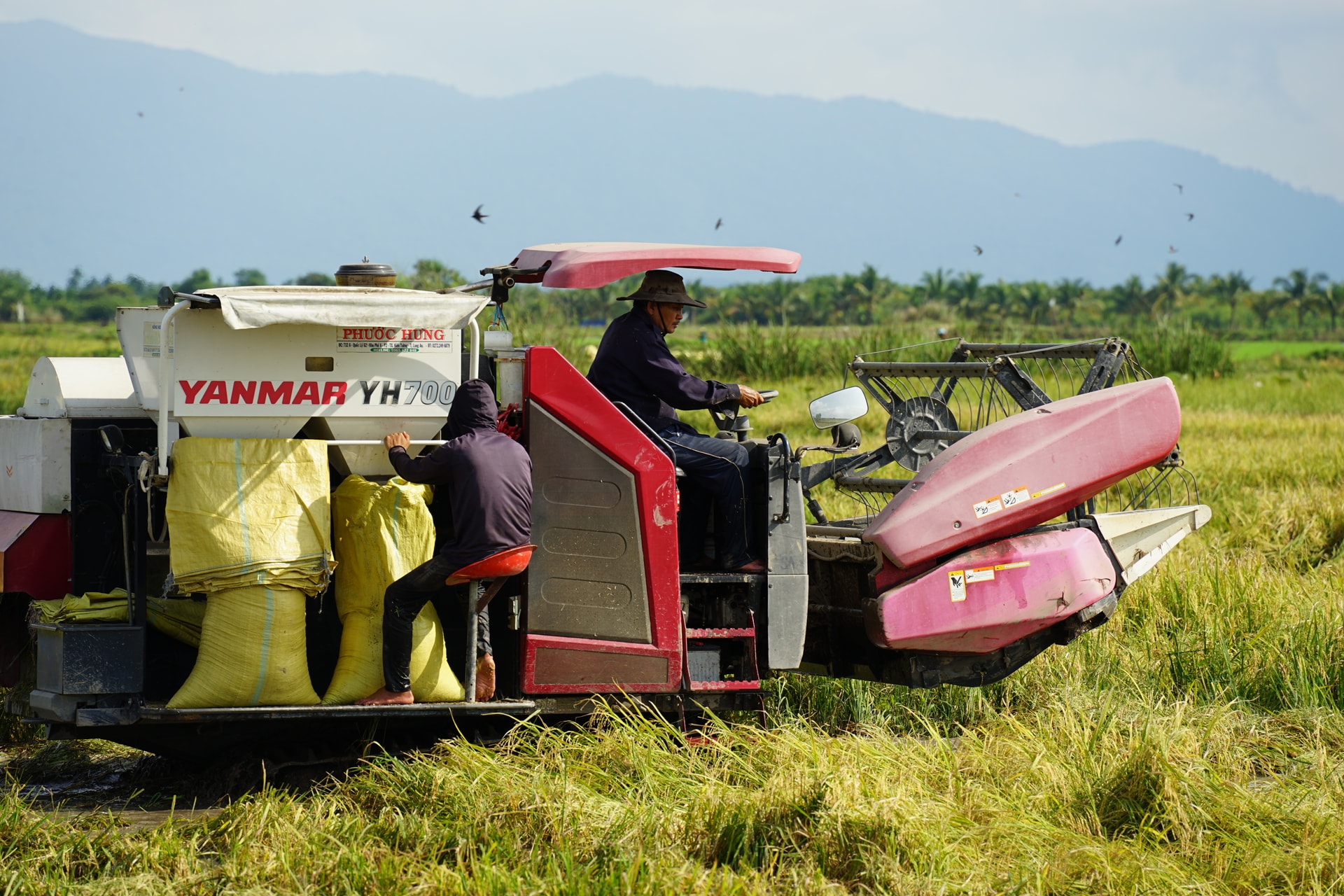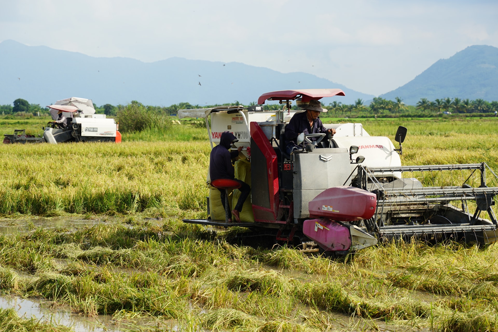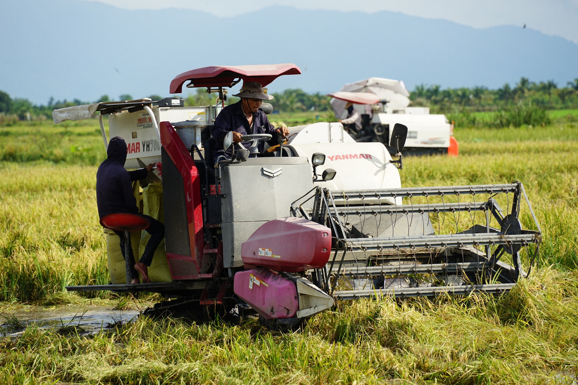 Tận dụng hầu hết máy gặt trong thôn để không thiệt hại thêm