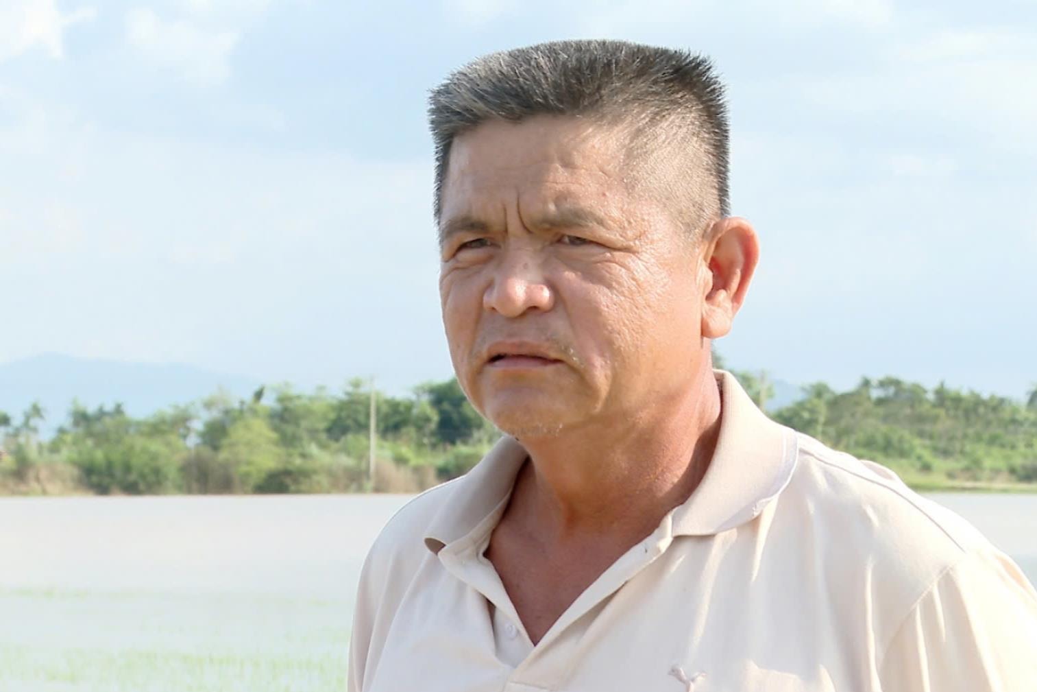 Ông Phạm Văn Hòa trầm ngâm sau khi nhìn thấy nước lũ về ngập đồng