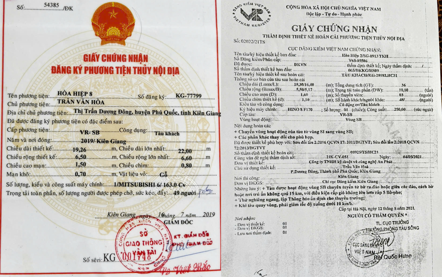 Theo ông Trần Văn Hòa, các doanh nghiệp có đơn kêu cứu đang sở hữu nhiều tàu vận chuyển hành khách du lịch quanh các đảo trên địa bàn đặc khu Phú Quốc. Những phương tiện này được đóng mang cấp VR-SI, vật liệu vỏ gỗ và được bọc ngoài bằng composite, hoạt động an toàn nhiều năm trên địa bàn.