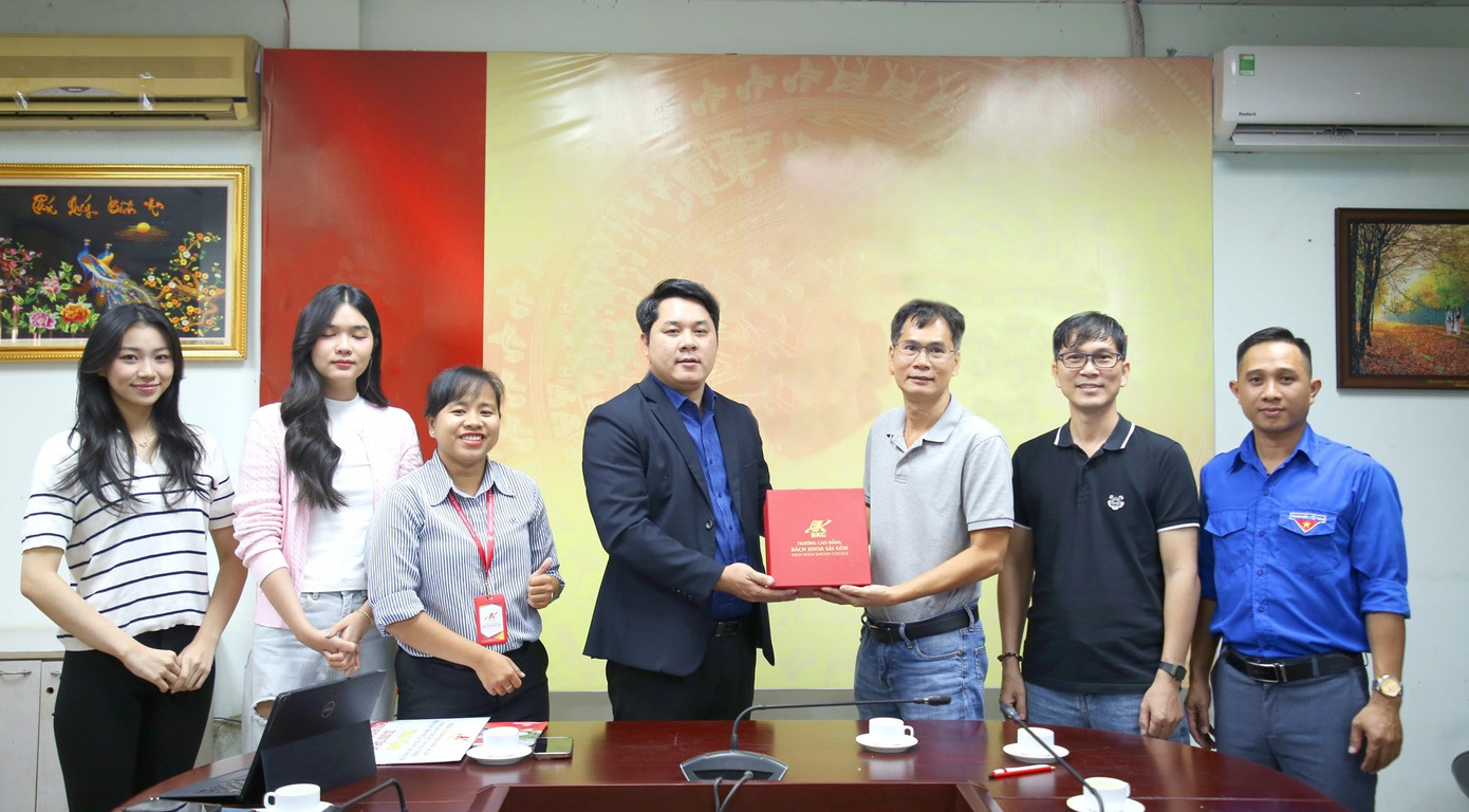 Phía Trường Cao đẳng Bách Khoa Sài Gòn tặng món quà lưu niệm đến Báo Tiền Phong.