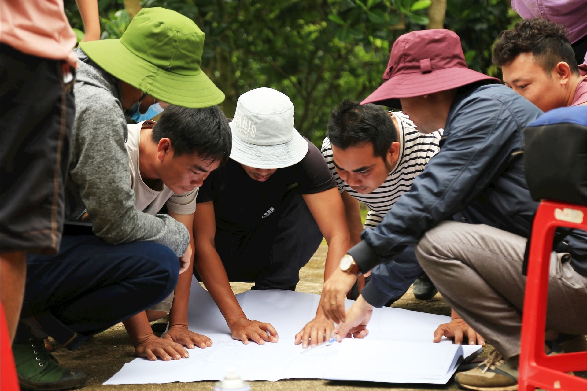 Người dân trong vùng dự án hồ Đắk Gang theo dõi bản đồ thu hồi đất tại dự án