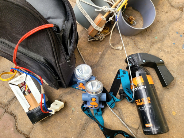 Bình xịt hơi cay và chĩa điện các đối tượng dùng khi đi trộm mèo.