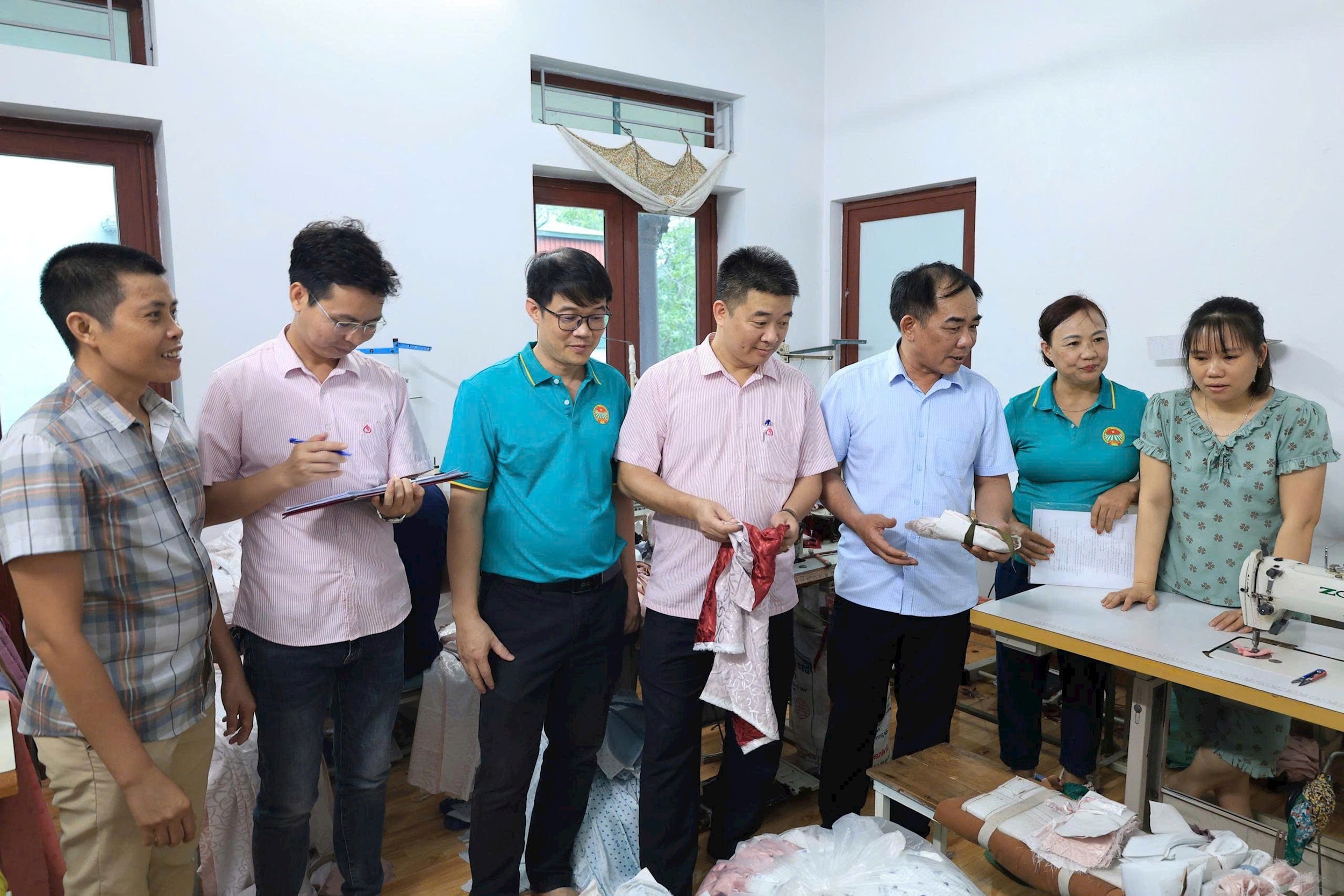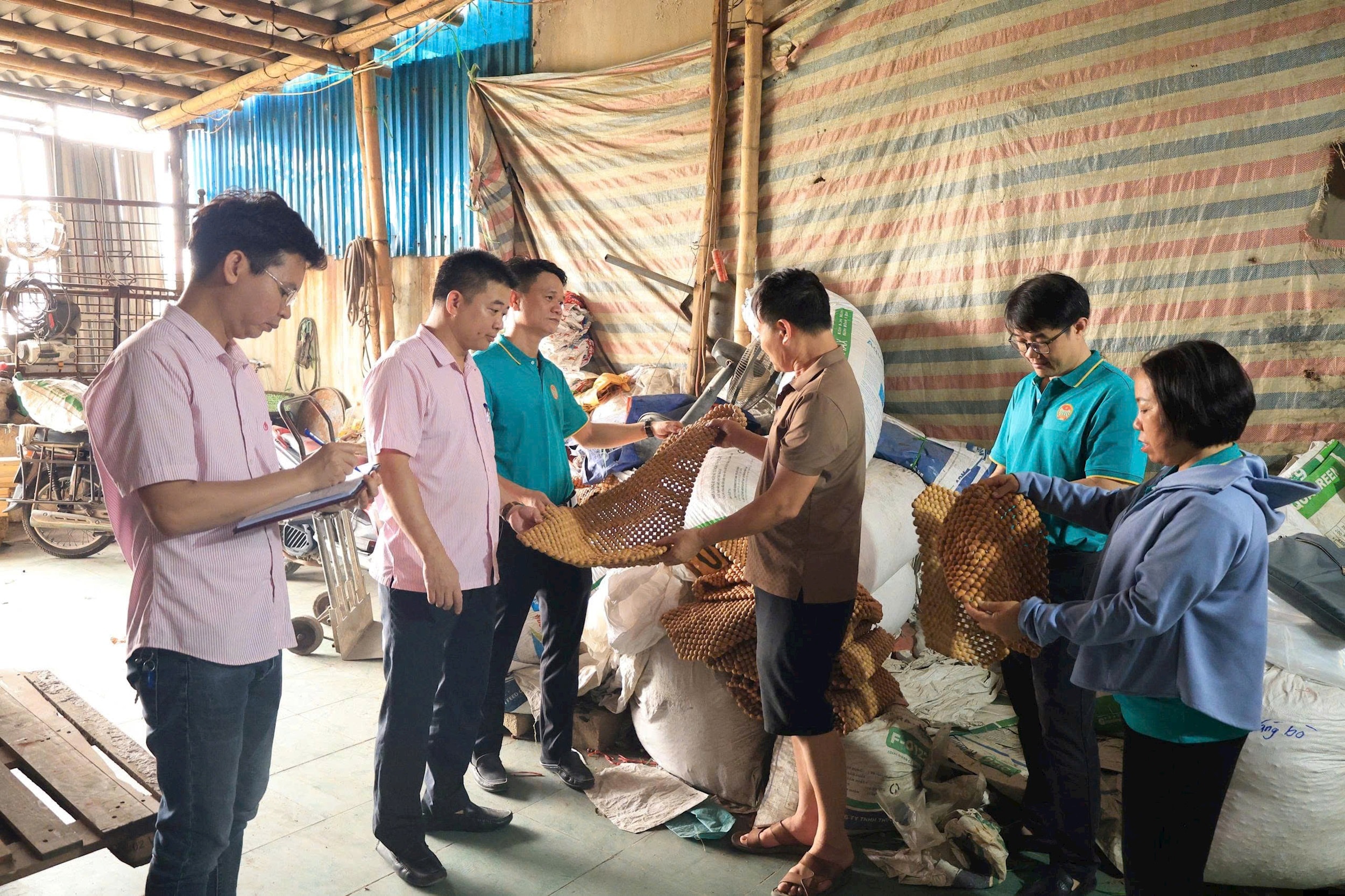 Phòng Giao dịch Ngân hàng Chính sách xã hội cùng lãnh đạo Hội Nông dân xã Thường Tín kiểm tra tình hình sản xuất tại các hộ gia đình vay vốn. Ảnh: PV