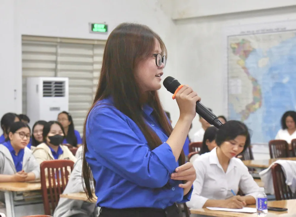 Bảo và Ngân nêu ý kiến tại diễn đàn. Ảnh: HN