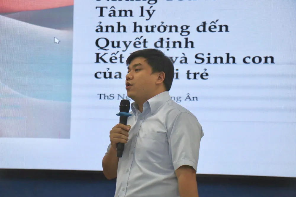 Tại diễn đàn, một số sinh viên chia sẻ quan điểm về hôn nhân và sinh con. Ngô Thái Bảo (24 tuổi, sinh viên năm 4, Trường Đại học Văn Hiến), cho biết Bảo dự định kết hôn sau 30 tuổi để có thời gian ổn định sự nghiệp và trải nghiệm cuộc sống tự do.