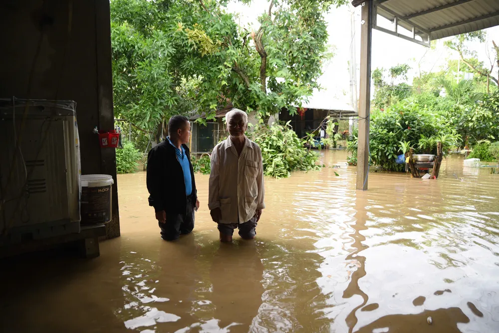 Nước từ sông dâng nhanh, tràn vào nhà dân chỉ trong ít phút, làm nhiều vật dụng, tài sản bị hư hỏng nặng. Người dân phải khẩn trương di chuyển lên khu vực cao hơn để đảm bảo an toàn.