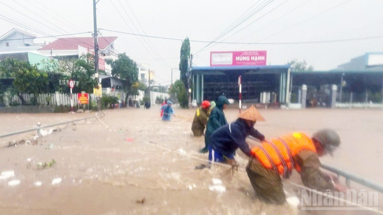Xã Phước hậu (Khánh Hòa) lắp đặt hệ thống dây bám giúp cho người dân thuận lợi di dời ra khỏi vùng nguy hiểm khi mưa lũ diễn biến phức tạp.