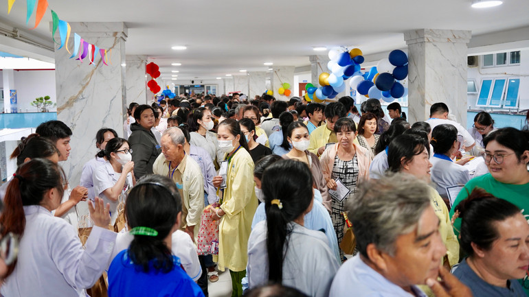 Không khí vui tươi trong Ngày hội "Phiên chợ 0 đồng" tại Bệnh viện Thống Nhất.
