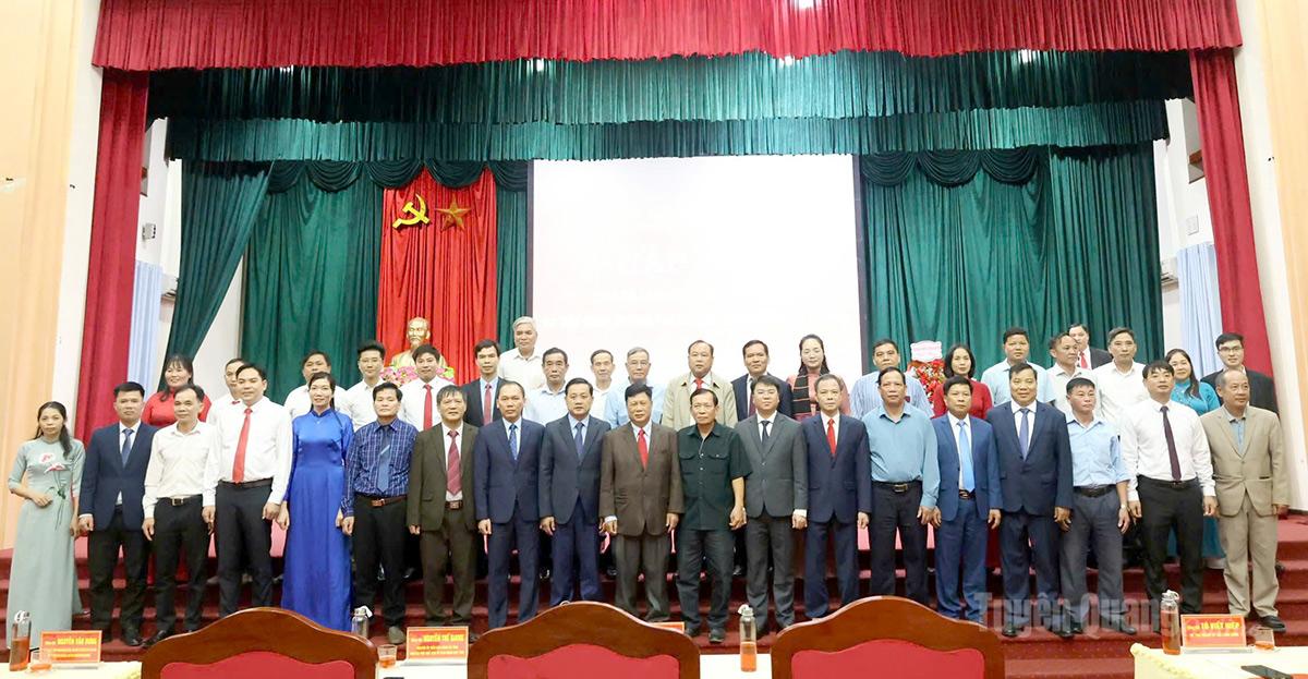 Các đồng chí nguyên lãnh đạo và lãnh đạo các xã chụp ảnh lưu niệm nhân dịp gặp mặt đầu Xuân.