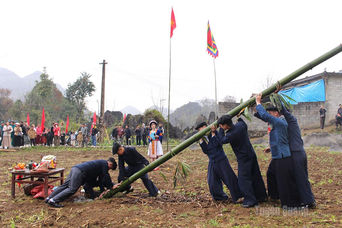 Nghi thức dựng cây nêu gửi gắm ước vọng bình an, no ấm của đồng bào Mông trên Cao nguyên đá Đồng Văn.
