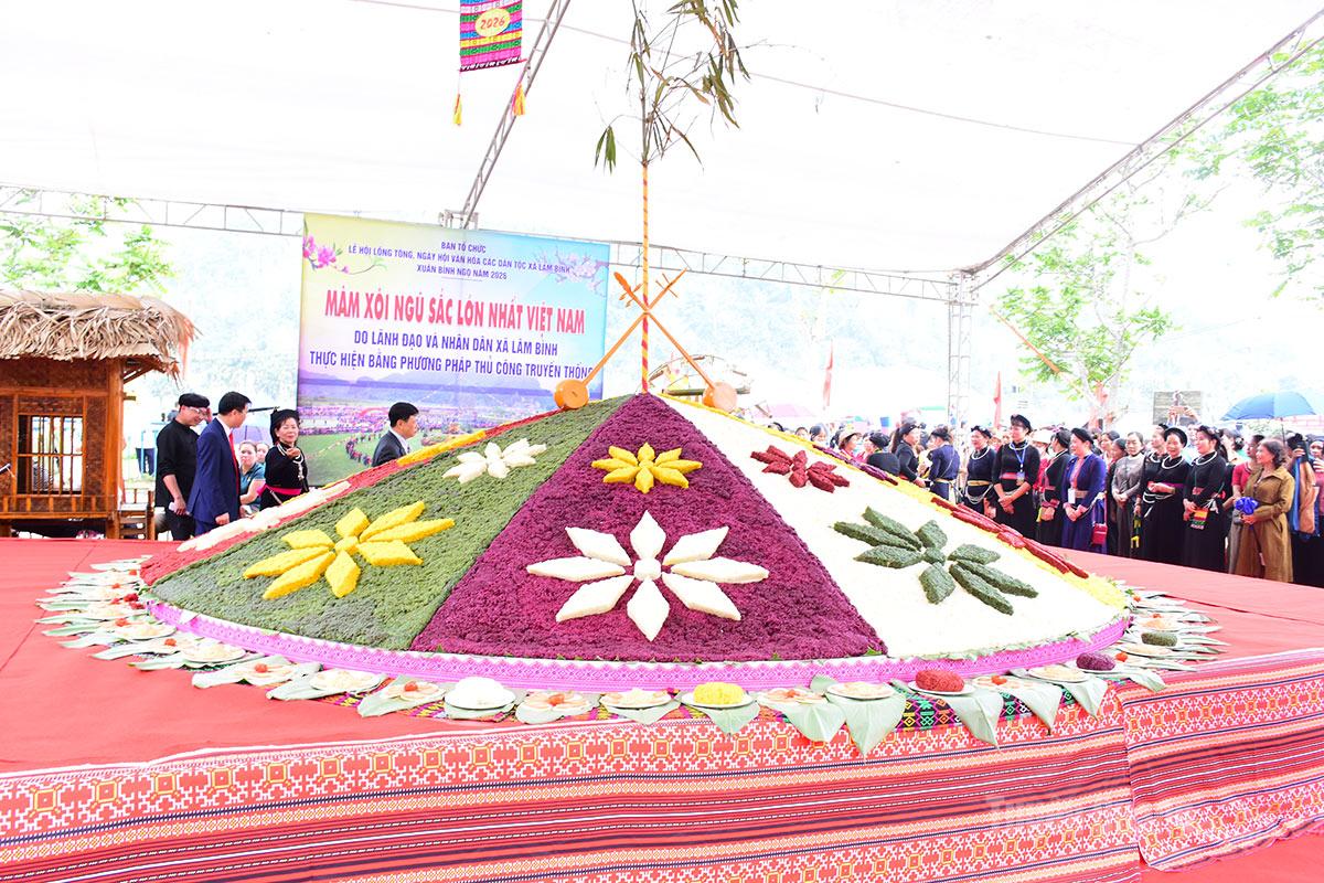 Một trong những điểm nhấn đặc biệt và đầy tự hào trong Lễ hội là sự kiện cán bộ và bà con Nhân dân các dân tộc xã Lâm Bình được Tổ chức xác nhận kỷ lục Việt Nam (VietKings) quyết định và xác nhận kỷ lục đối với “Mâm xôi ngũ quả ngũ sắc lớn nhất Việt Nam do cán bộ và nhân dân xã Lâm Bình cùng thực hiện bằng phương pháp truyền thống.”