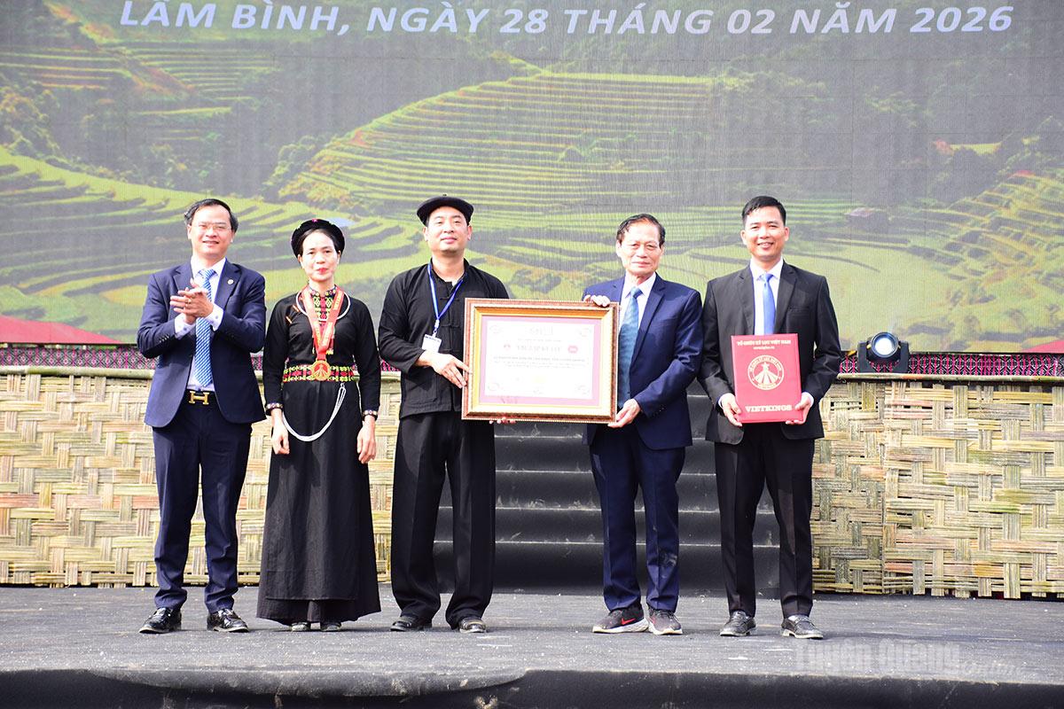 Hội Kỷ lục Việt Nam trao bằng công nhận Kỷ lục mâm xôi ngũ sắc cho xã Lâm Bình.