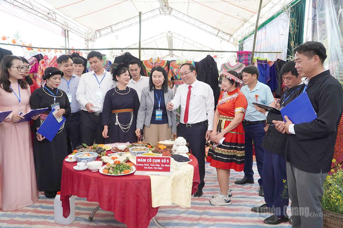 Đại biểu tham quan gian thi trưng bày mâm cỗ truyền thống.
