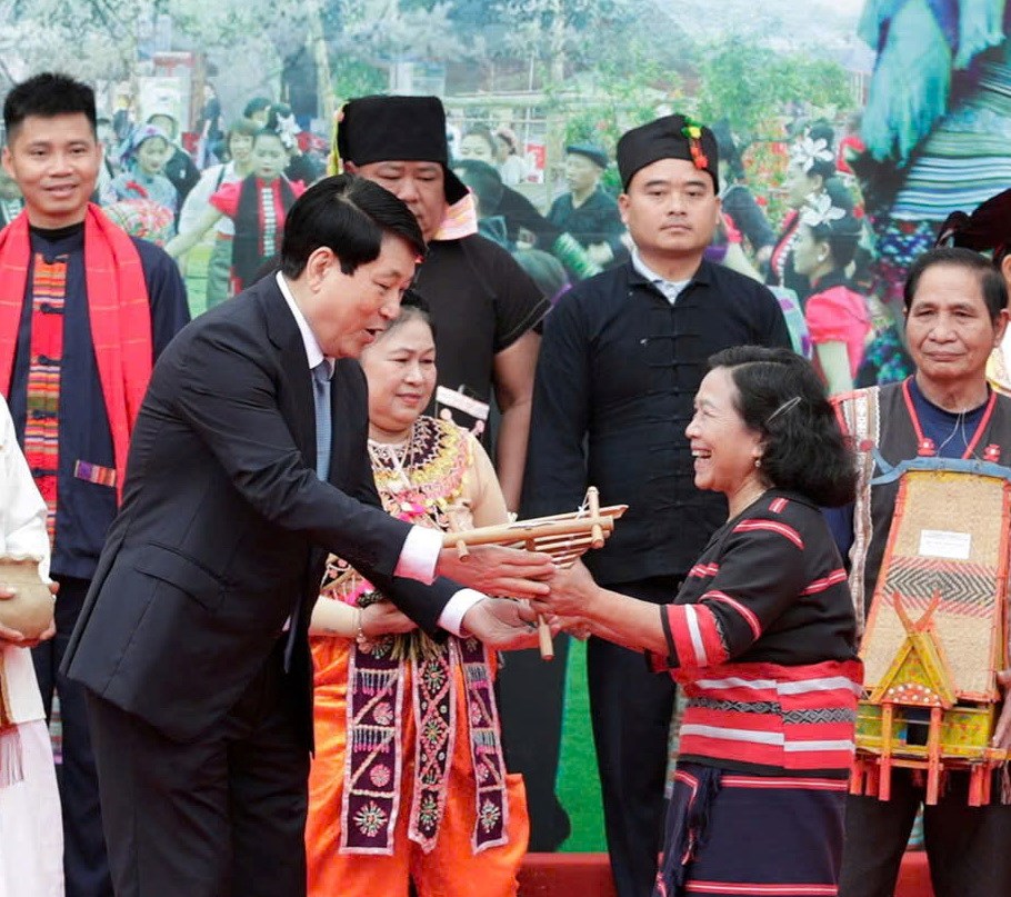 Hoạt động lãnh đạo Đảng, Nhà nước thăm, chúc Tết đồng bào các dân tộc tại sự kiện, góp phần củng cố niềm tin của Nhân dân vào đường lối của Đảng, tăng cường tinh thần yêu nước, đại đoàn kết dân tộc. Trong ảnh: Chủ tịch nước Lương Cường với đồng bào các dân tộc tại sự kiện “Sắc xuân trên mọi miền Tổ quốc” năm 2025