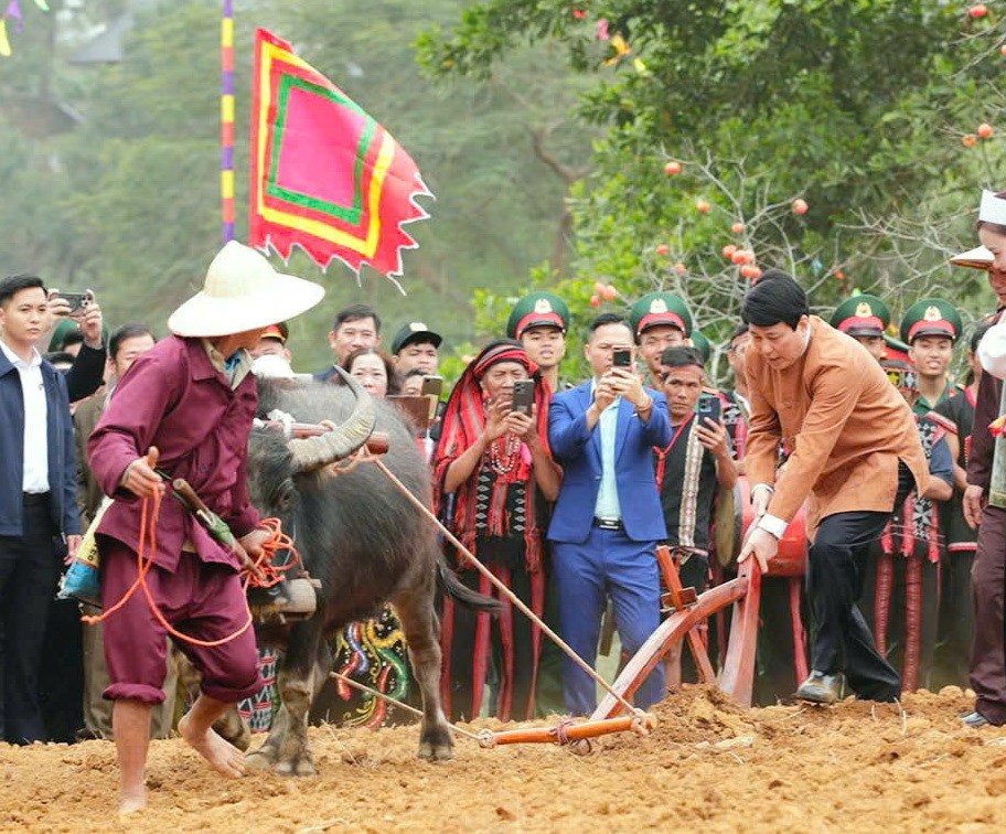 Sự kiện “Sắc xuân trên mọi miền Tổ quốc” là dịp tôn vinh, giới thiệu giá trị văn hóa truyền thống, phong tục, tập quán, nghi lễ của các dân tộc Việt Nam. Trong ảnh: Chủ tịch nước Lương Cường tham dự các hoạt động tại sự kiện "Sắc xuân trên mọi miền Tổ quốc" năm 2025