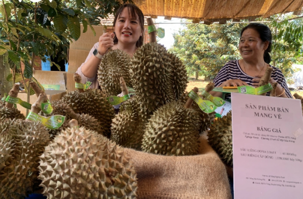 Nông dân trồng sầu riêng bán trực tiếp sản phẩm của mình tại vườn trong khuôn khổ diễn ra lễ hội.