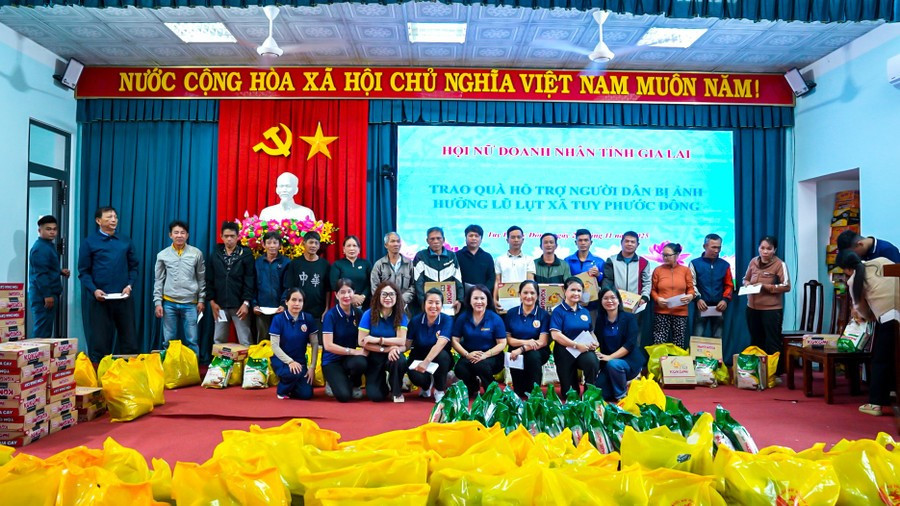 Tiếp tục các hoạt động hướng về đồng bào vùng lũ, sáng 25/11, Hội Nữ doanh nhân tỉnh Gia Lai đã đến thăm, động viên và trao 200 suất quà (1 triệu đồng/suất) cho người dân bị thiệt hại do mưa lũ tại xã Tuy Phước Đông. Cùng ngày, Hội cũng trao 100 suất quà tổng trị giá 220 triệu đồng cho người dân khu vực 9, phường Quy Nhơn.