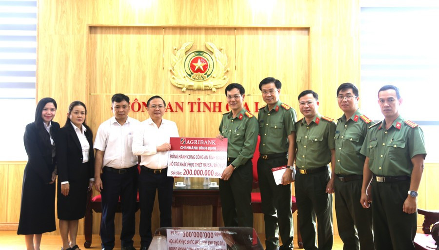 Cùng ngày, Giám đốc Agribank Bình Định Nguyễn Hữu Câu đã đến động viên, trao tặng Công an tỉnh Gia Lai 200 triệu đồng để đồng hành, hỗ trợ khắc phục thiệt hại do bão lụt.