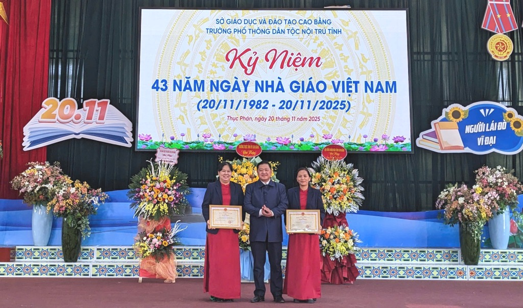 Nhân dịp này, 2 giáo viên nhận Bằng khen của UBND tỉnh; 1 cá nhân nhận Bằng khen của Bộ Giáo dục và Đào tạo. Hiệu trưởng nhà trường khen thưởng 4 tập thể lớp đạt thành tích xuất sắc phong trào thi đua Chào mừng Ngày Nhà giáo Việt Nam 20/11 năm học 2025 - 2026.