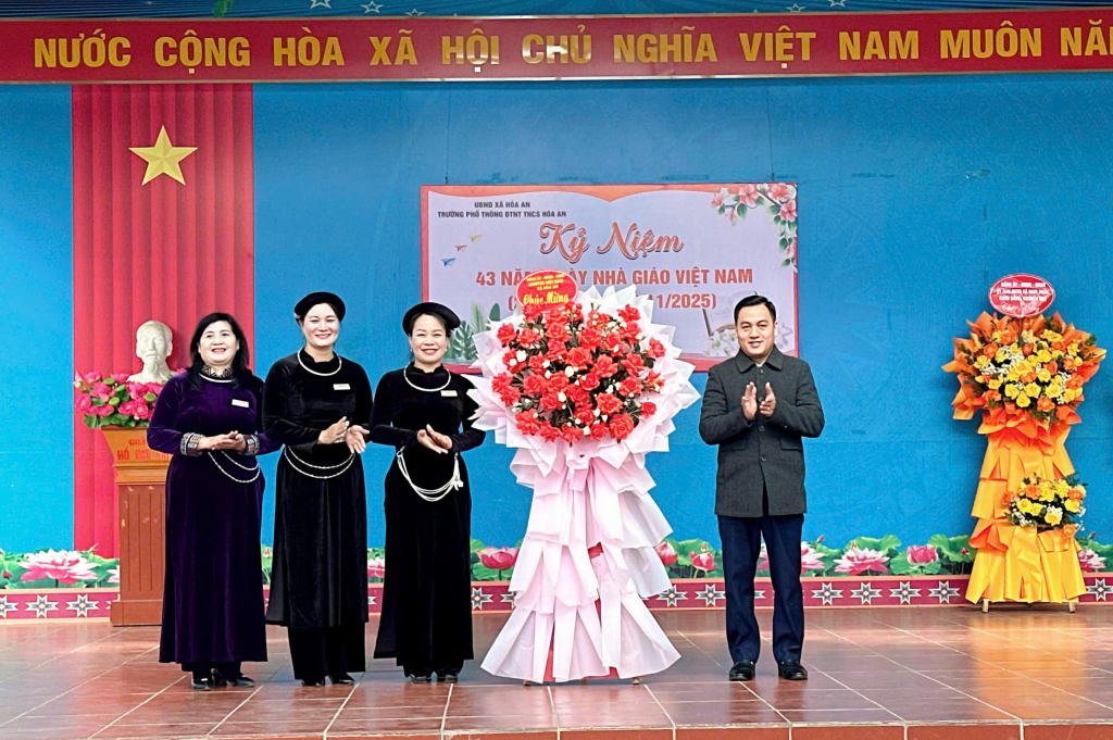 Tại các điểm trường đến thăm, lãnh đạo xã Hòa An gửi lời chúc mừng và tri ân sâu sắc tới đội ngũ thầy giáo, cô giáo - những người đang ngày đêm cống hiến cho sự nghiệp trồng người. Các đồng chí chúc các thầy cô luôn mạnh khỏe, giữ vững tình yêu nghề, tiếp tục hoàn thành xuất sắc nhiệm vụ được giao.