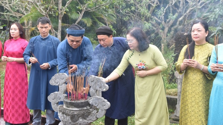Dâng hoa, dâng hương tại Khu di tích lưu niệm Phan Bội Châu.