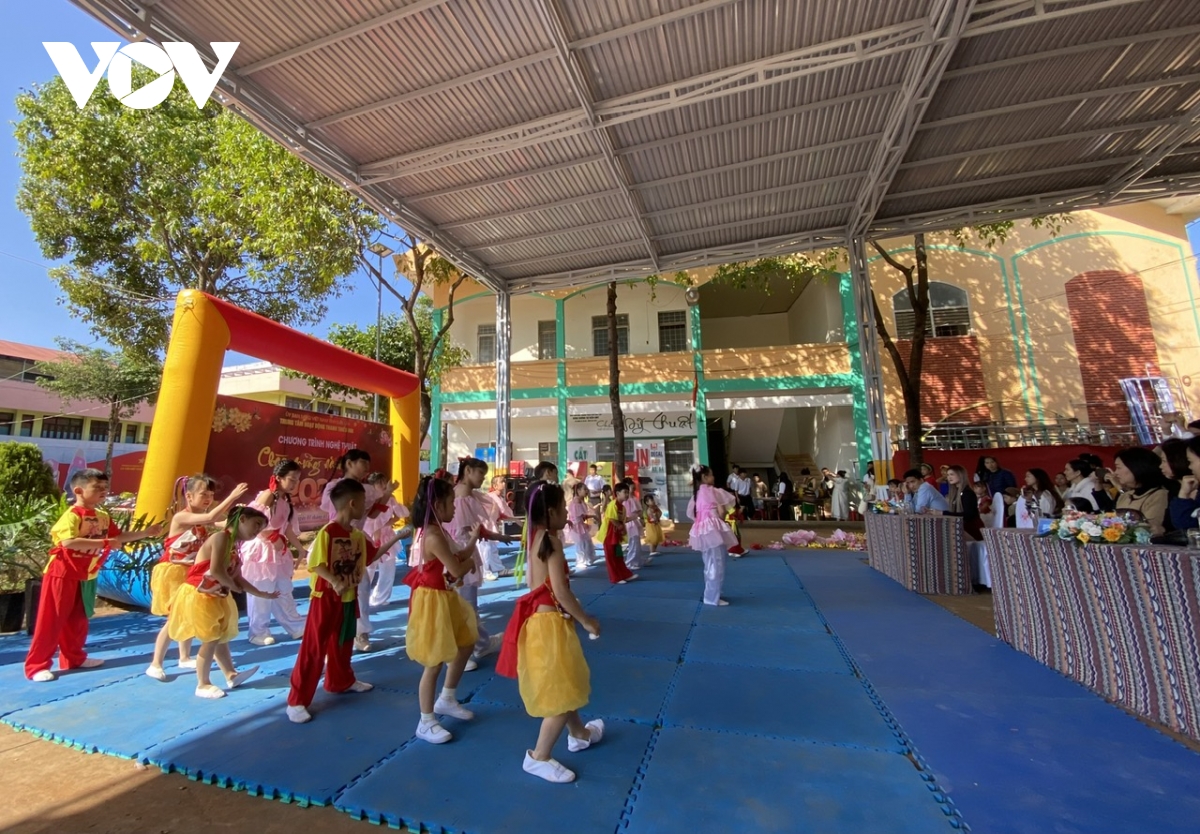 Các tiết mục múa hát thiếu nhi được dàn dựng sinh động, tạo điểm nhấn nghệ thuật trong chương trình chào đón năm 2026.