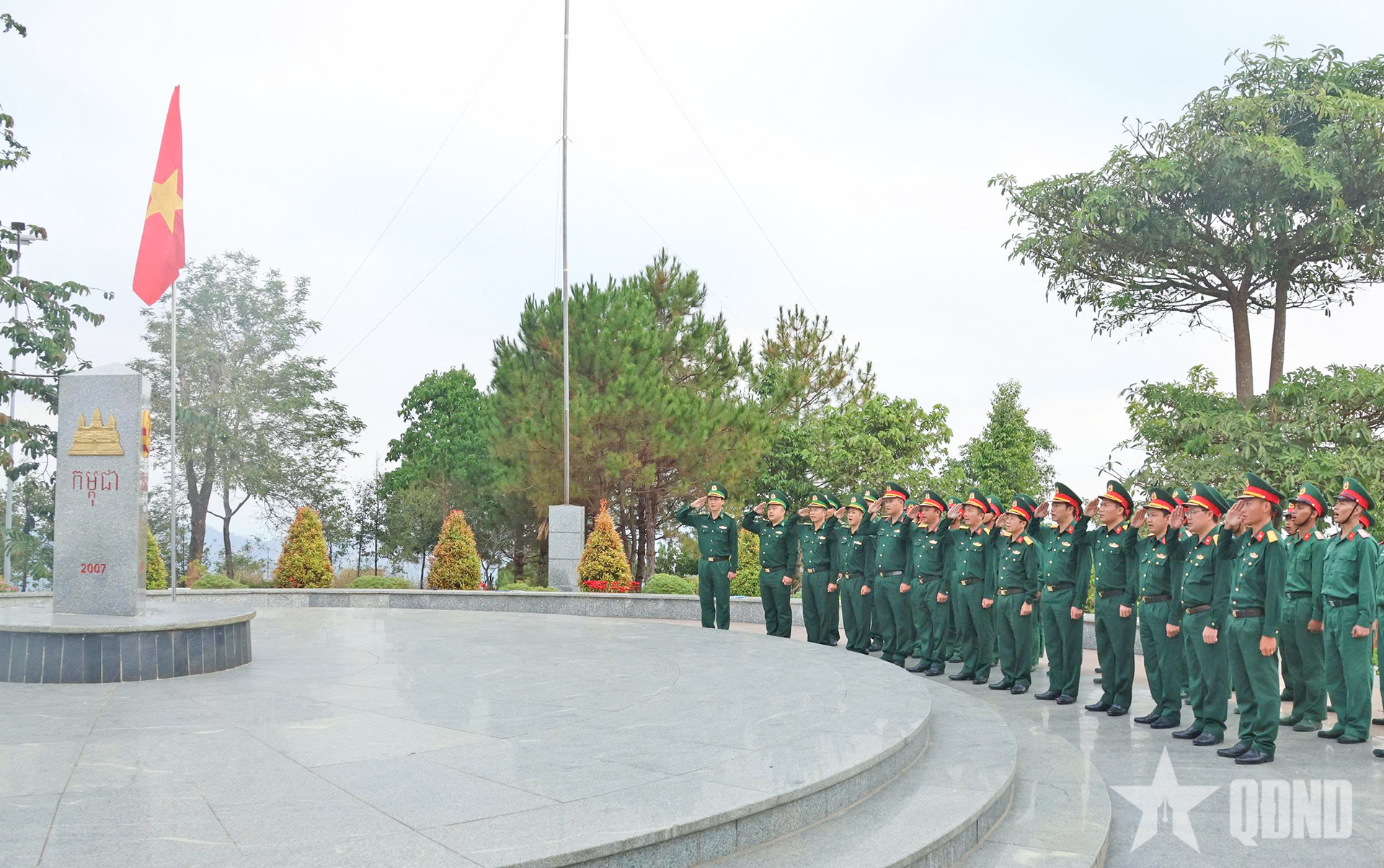 Chào cờ cột mốc biên giới 3 nước Việt Nam - Lào - Campuchia.