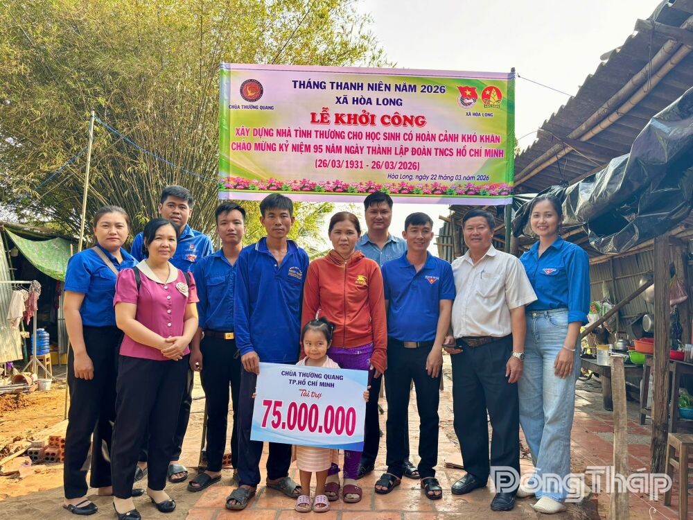 Trong Tháng thanh niên năm 2026, Xã đoàn Hòa Long phối hợp với các đơn vị liên quan xây dựng nhà tình thương cho học sinh có hoàn cảnh khó khăn.