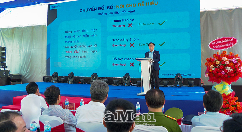 Đồng chí khẳng định, mỗi người dân Cà Mau đều có thể cảm nhận rõ lợi ích, sự tiện lợi mà chuyển đổi số mang lại trong đời sống hằng ngày, từ thanh toán hóa đơn điện, nước qua ứng dụng di động, mua sắm trực tuyến, tra cứu thông tin, đến việc tương tác với các dịch vụ công. Chuyển đổi số còn mở ra nhiều cơ hội cho doanh nghiệp, giúp nâng cao năng lực cạnh tranh, thích ứng nhanh với nhu cầu của thị trường, góp phần thúc đẩy kinh tế - xã hội phát triển nhanh và bền vững.